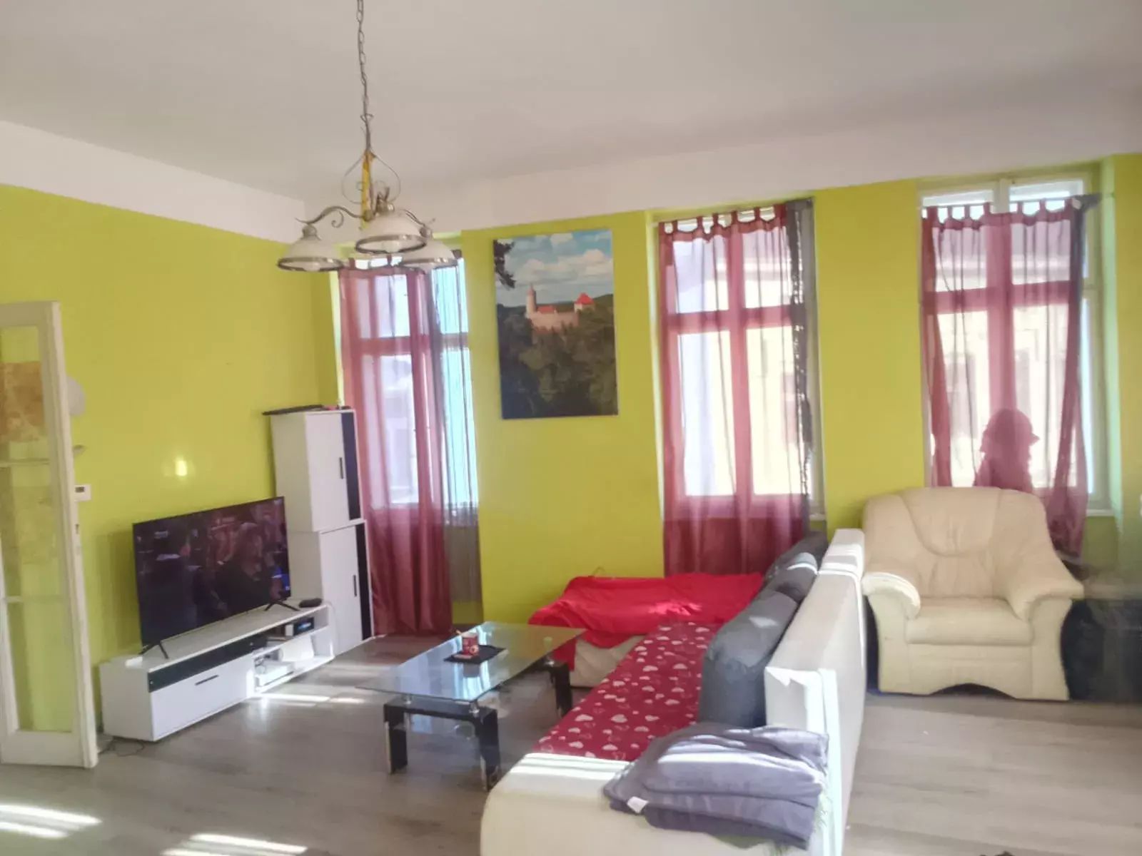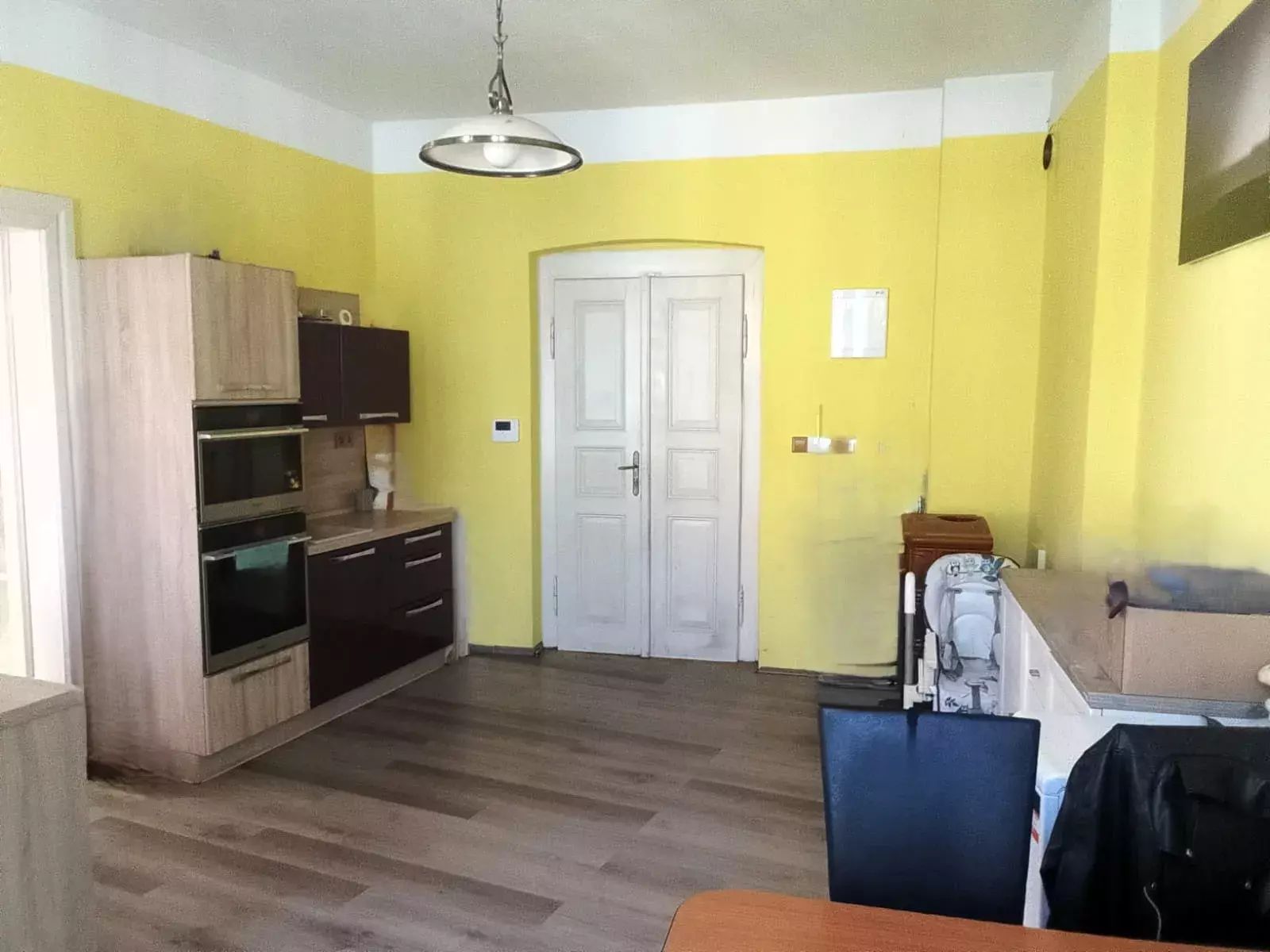 Exkluzivně nabízíme pronájem bytu o velikosti 53 m2 v 1. patře secesního domu v Mělnické ulici v centru Mšena. Do bytu se vchází dvoukřídlými secesními dveřmi do obývací kuchyně. Zde je skříňka s jističi a elektroměr, elektrický vrátný s displejem, termostat, který ovládá 2 infra topné panely v podobě obrazů, kachlová kamna, vestavná kuchyně z kuchyňského studia Dušek se zabudovanými spotřebiči Whirpool ( sklokeramická deska, trouba, mikrovlnná trouba - obě trouby jdou ovládat přes případnou Wifi na dálku ). Pod dřezem je zabudovaný koš na tříděný odpad. Za ním je vodoměr bytu a uzávěr vody bytu. Skříňky kuchyně mají kvalitní kování s brzdami. Některé vrchní dvířky kuchyně jsou výklopné. V kuchyni je na zakázku vyrobený stolek, 4 koženkové židle, konferenční stolek, 2 špaletové okna s izolačními trojskly do Husovy ulice. Na podlaze obývací kuchyně a pokoje je vinylová podlaha. V bytě je nadbytek dřevěných zásuvek, aby nájemce nepoužíval nebezpečné rozdvojky a prodlužovačky. Z obývací kuchyně se dvoukřídlými prosklenými secesními dřevěnými dveřmi dostanete do velkého pokoje. Zde je po pravé straně koupelna s WC. Do této místnosti vstupujete posuvnými dřevěnými zabudovanými dveřmi. Zde je zprava WC Jika Lyra plus, nad ním je bojler Dražice, malá skříňka se zabudovaným umyvadlem, skříňka se zrcadlem, pračka, sprchový kout Huppe se sprchovou a umyvadlovou baterií Grohe a topným žebříkem ovládaným termostatem. V pokoji je termostat, který ovládá také 2 topné panely v podobě hradu Kokořína a Karlštejna. V pokoji je zánovní manželská postel s nočními stolky, komoda. Pokoj je krásně světlý- rohový se 7 špaletovými okny směrem do Husovy a Mělnické ulice.