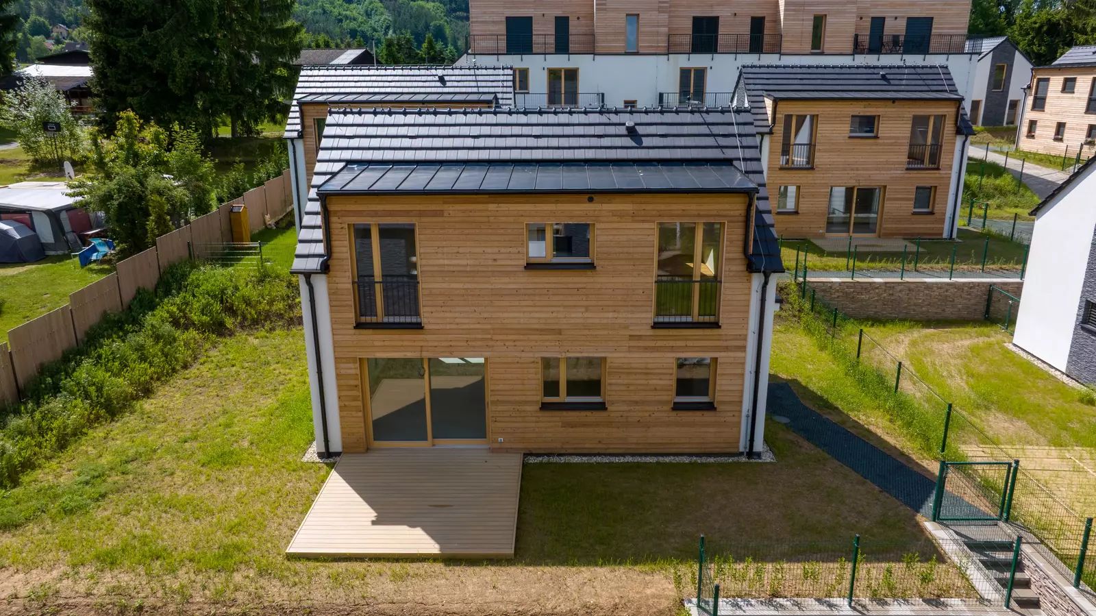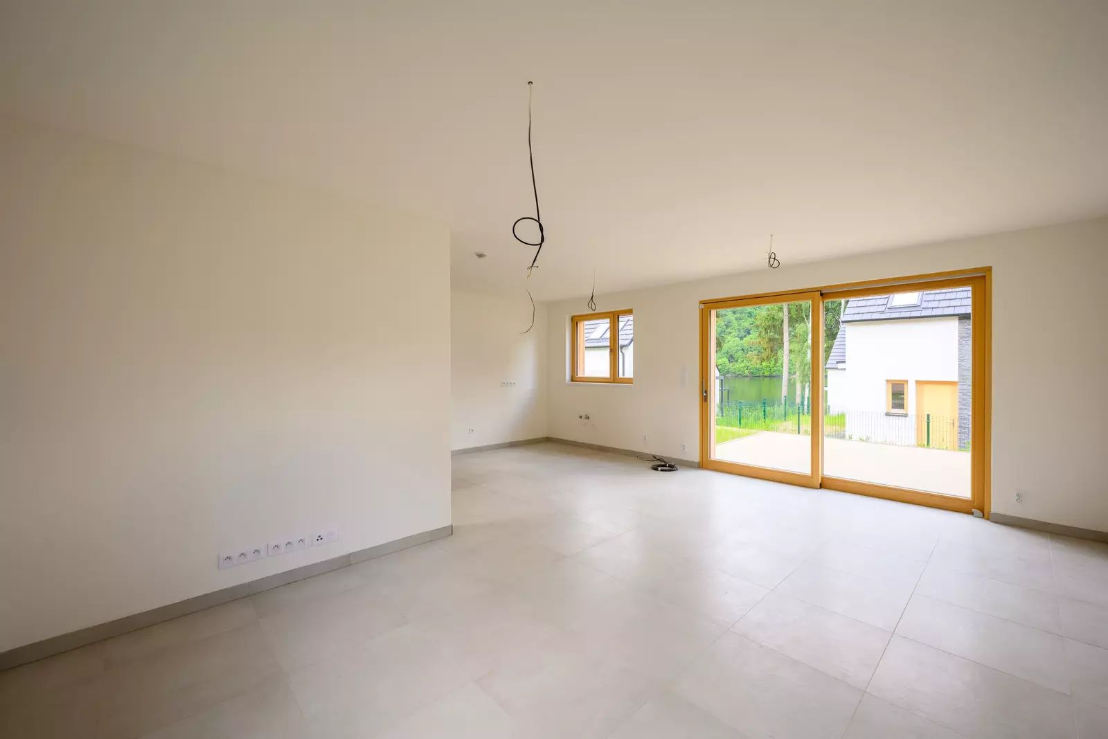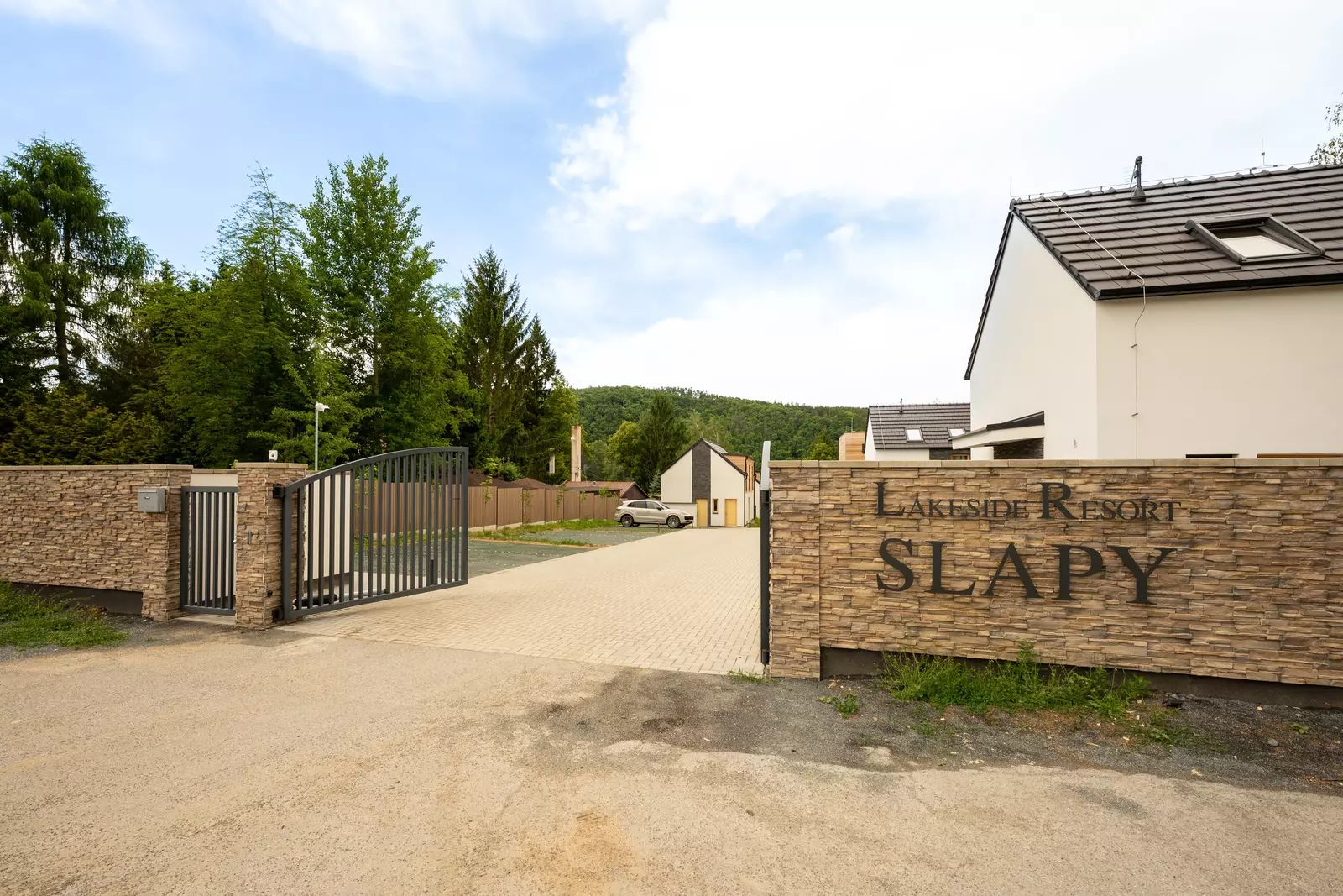 Nabízíme k prodeji dům (112,8 m2) s pozemkem (373 m2) v luxusním Lakeside Resortu Slapy. Tento exklusivní resort na Nové Živohošti je uzavřená privátní zóna s vyhřívaným bazénem a dostatkem parkovacích stání včetně dobíjení elektromobilů. Od tohoto domu je to pouhých padesát metrů k vyhřívanému bazénu a dalších 50 metrů je to přímo přímo na pláž Slapské přehrady. Dům se v prvním patře skládá z předsíně, samostatného WC, šatny, technické místnosti a prostorného obývacího pokoje s kuchyňským koutem. V druhém patře jsou tři ložnice a koupelna s wc.