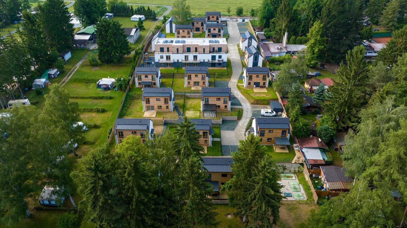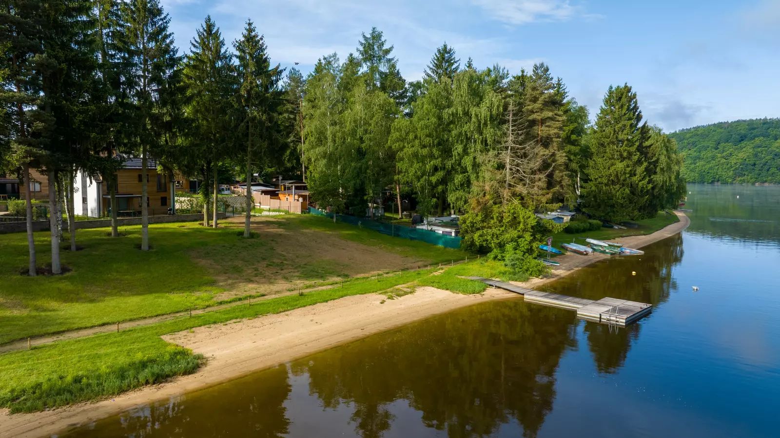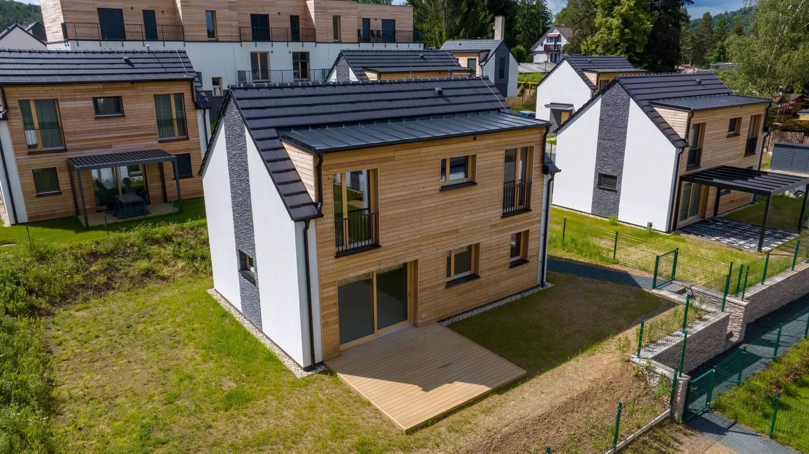 Nabízíme k prodeji dům (112,8 m2) s pozemkem (373 m2) v luxusním Lakeside Resortu Slapy. Tento exklusivní resort na Nové Živohošti je uzavřená privátní zóna s vyhřívaným bazénem a dostatkem parkovacích stání včetně dobíjení elektromobilů. Od tohoto domu je to pouhých padesát metrů k vyhřívanému bazénu a dalších 50 metrů je to přímo přímo na pláž Slapské přehrady. Dům se v prvním patře skládá z předsíně, samostatného WC, šatny, technické místnosti a prostorného obývacího pokoje s kuchyňským koutem. V druhém patře jsou tři ložnice a koupelna s wc.