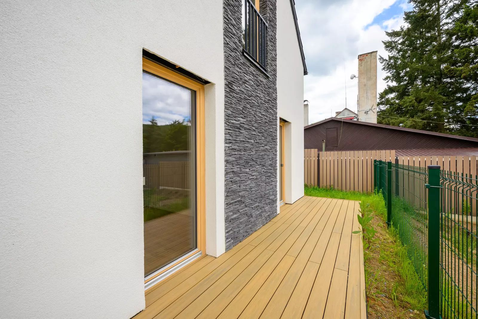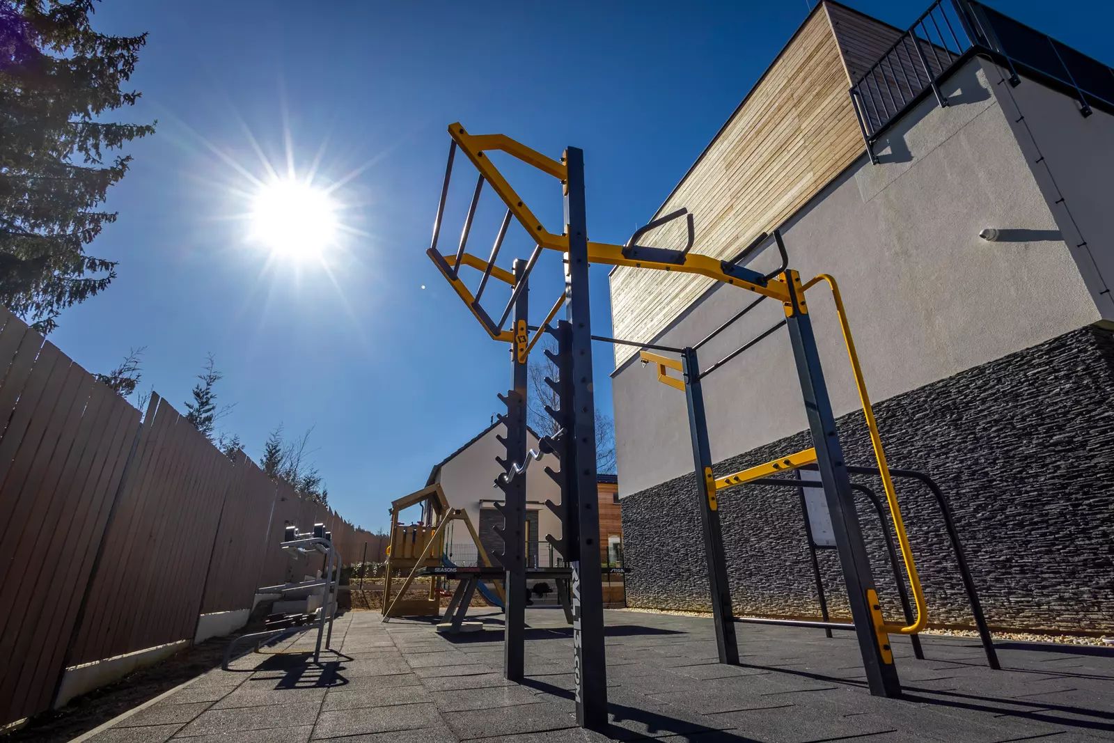 Nadstandardní provedení jako kámen, dřevo a slunné terasy. Tvoříme moderní design, který odolá času. Dbáme na funkčnost a je pro nás důležité, aby noví majitelé ocenili kvalitu zpracování a výběr materiálů. Na střeše apartmánové budovy budou fotovoltaické panely na výrobu elektřiny pro ohřev vody a bazénu (případně na osvětlení společných prostor).