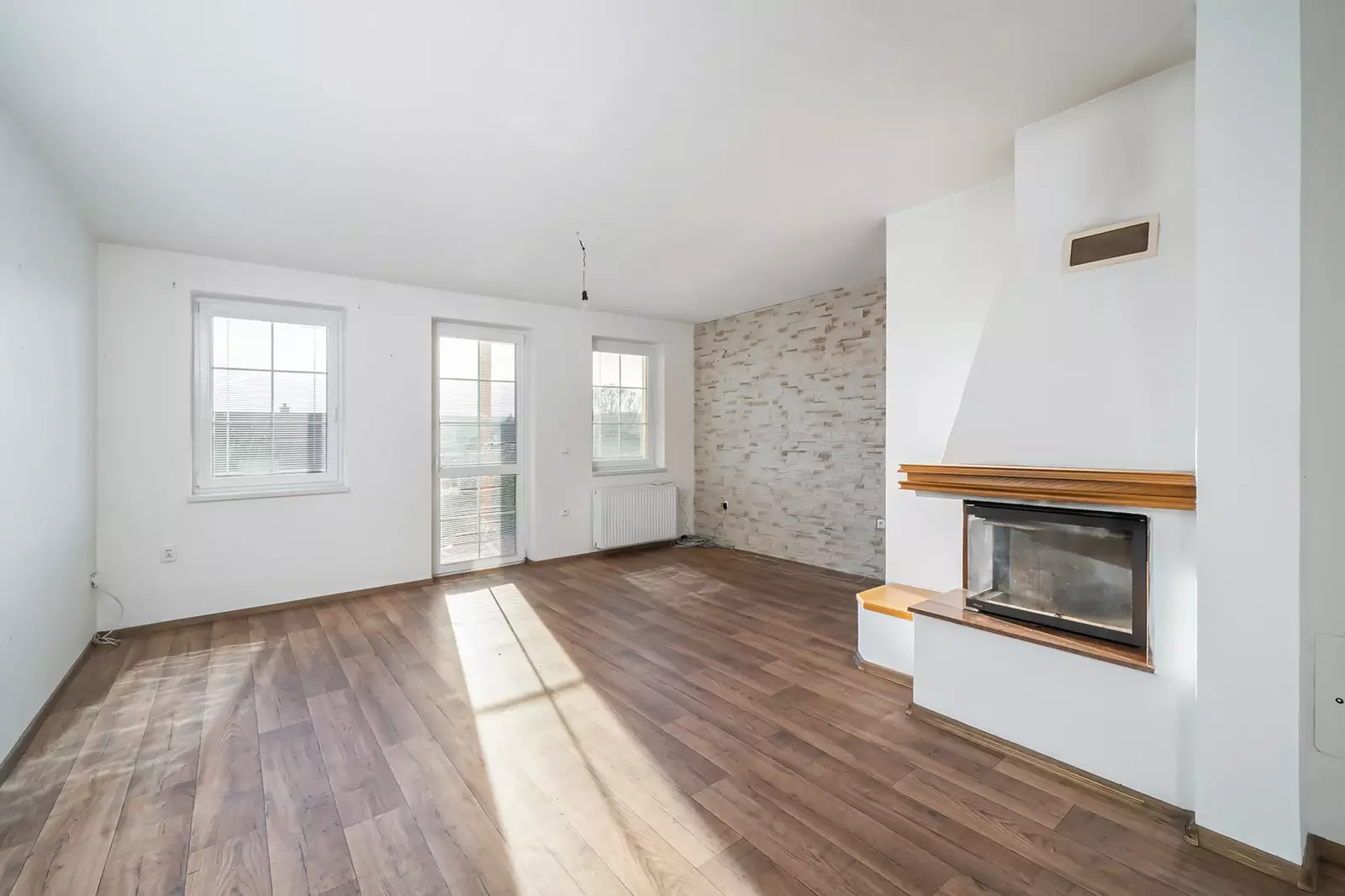 Interiér domu je částečně zařízen, včetně kompletní kuchyňské linky se spotřebiči. Topení je zajištěno kombinací plynového kotle a krbu v obývacím pokoji. Celý dům je orientován na jih, což zajišťuje dostatek denního světla a příjemného pocitu při ranní snídani na terase domu.