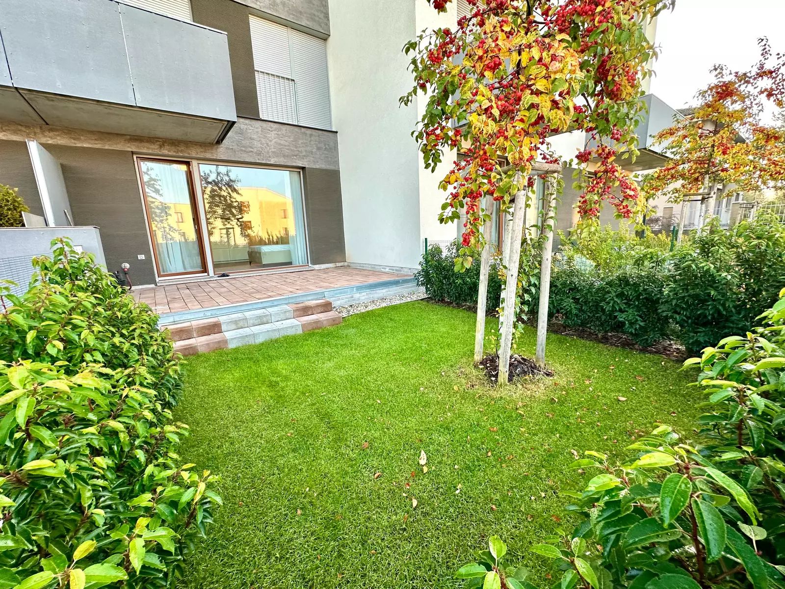 Byt má vlastní rekuperační jednotku a využití dešťové vody pro splachování WC, která vám ušetří peníze.