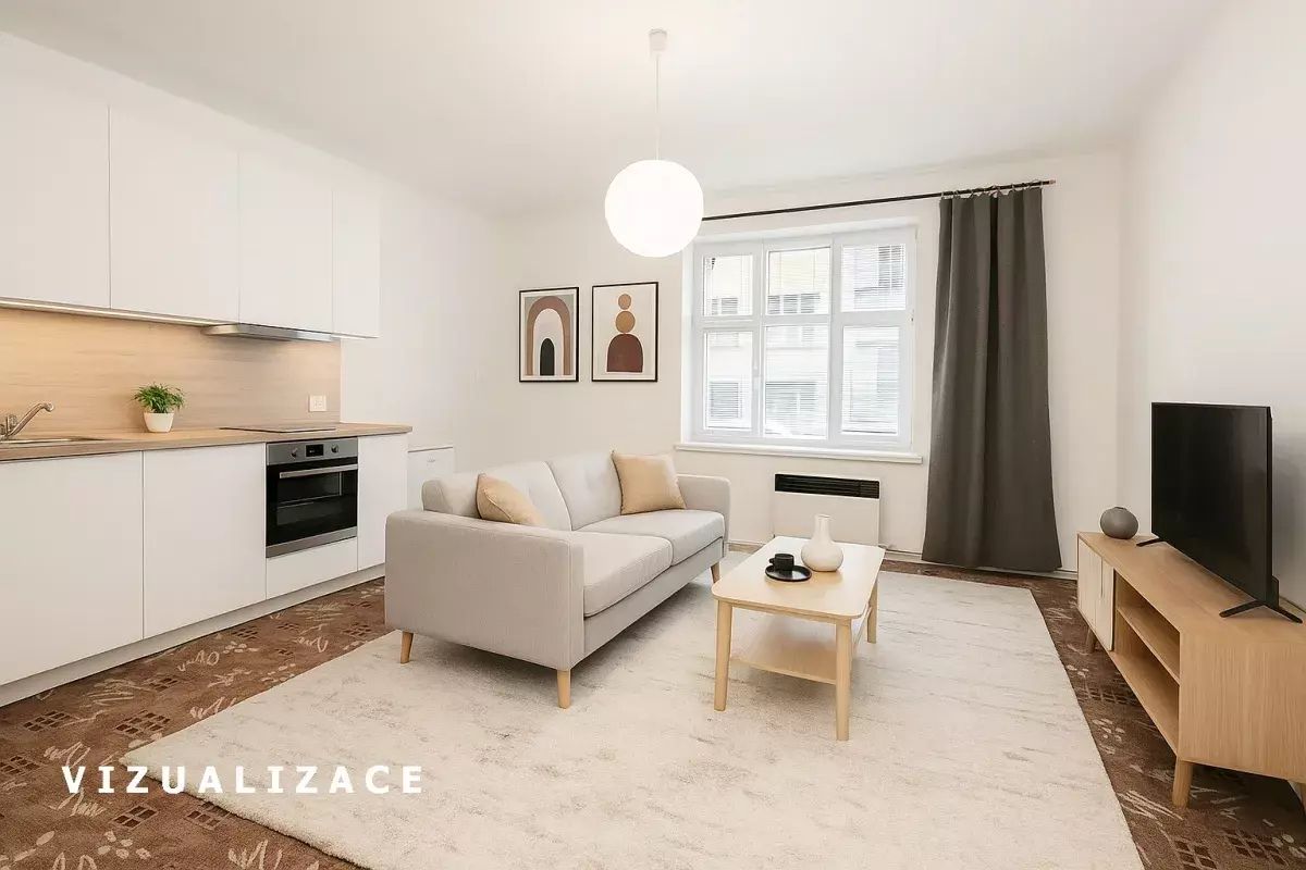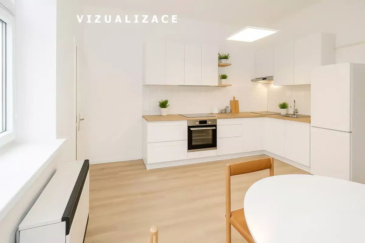 V galerii najdete i vizualizaci jak by mohly vypadat varianty bytu po rekonstrukci 1+1 nebo 2+kk...