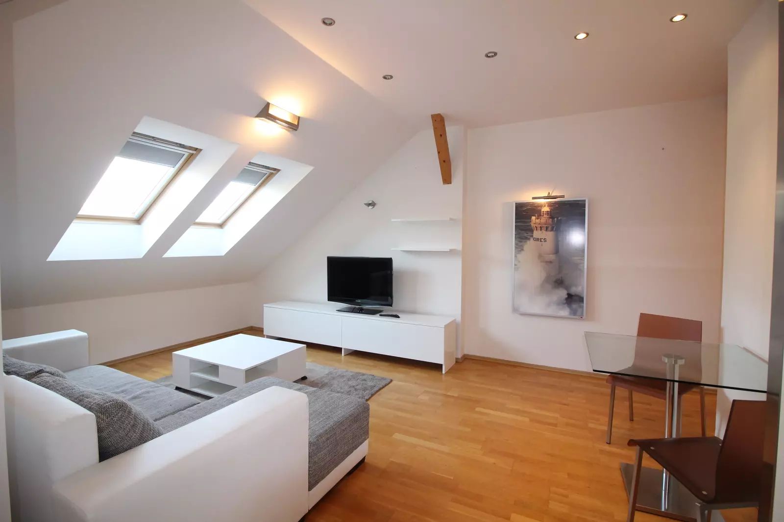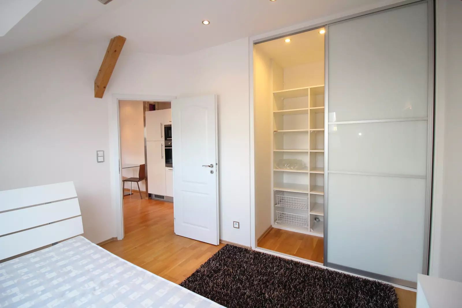 Nabízíme k pronájmu krásný byt, který se nachází ve čtvrtém patře bytového domu. Bytová jednotka byla nově kolaudována v roce 2008 a jedná se o podkrovní byt. Dispozice bytu je 2+kk, skládá se ze vstupní předsíně, prostorného obývacího pokoje, kompletně vybavená kuchyňská linka. Dále samostatná ložnice, doplněná o velkou praktickou šatnu. Velká koupelna s vanou, toaletou a pračkou. Byt je kompletně vybavený, včetně vkusného nábytku, který je na fotografiích.