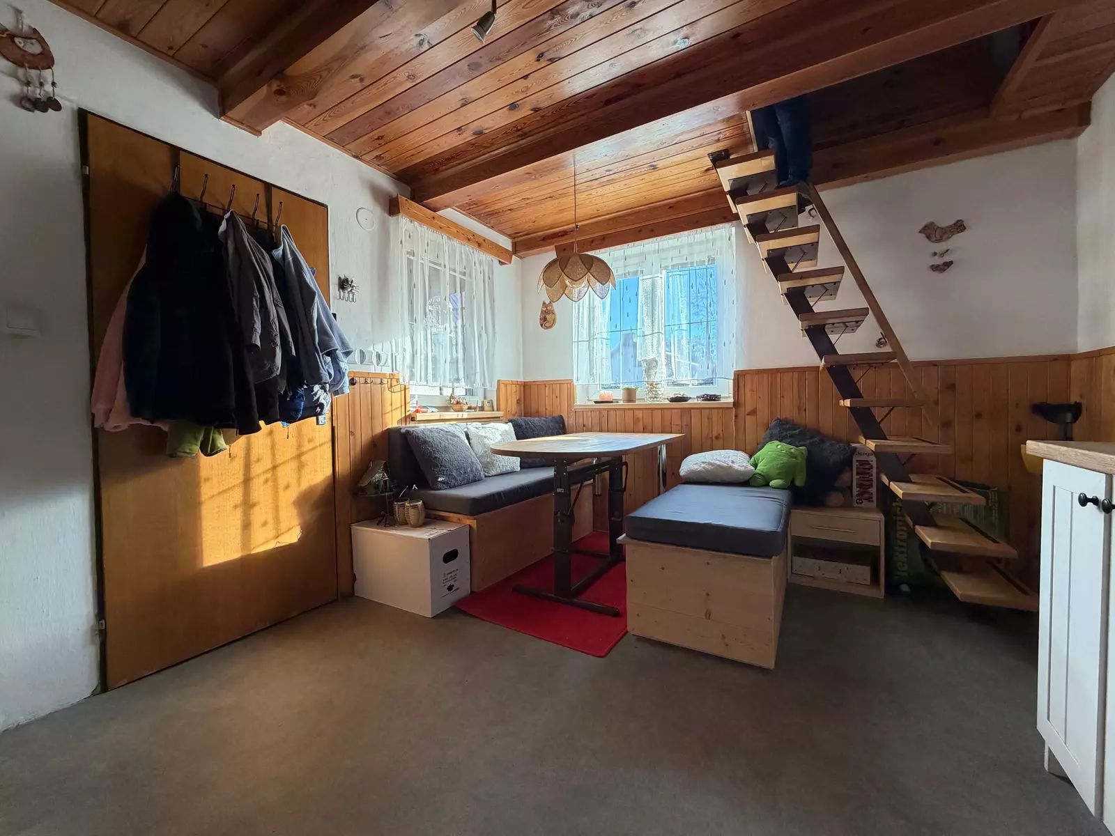 • Celá chata je podsklepena