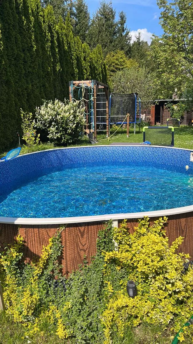 • Polozapuštěný bazén 5,5 × 3,7 m s kompletní filtrací a solárním ohřevem