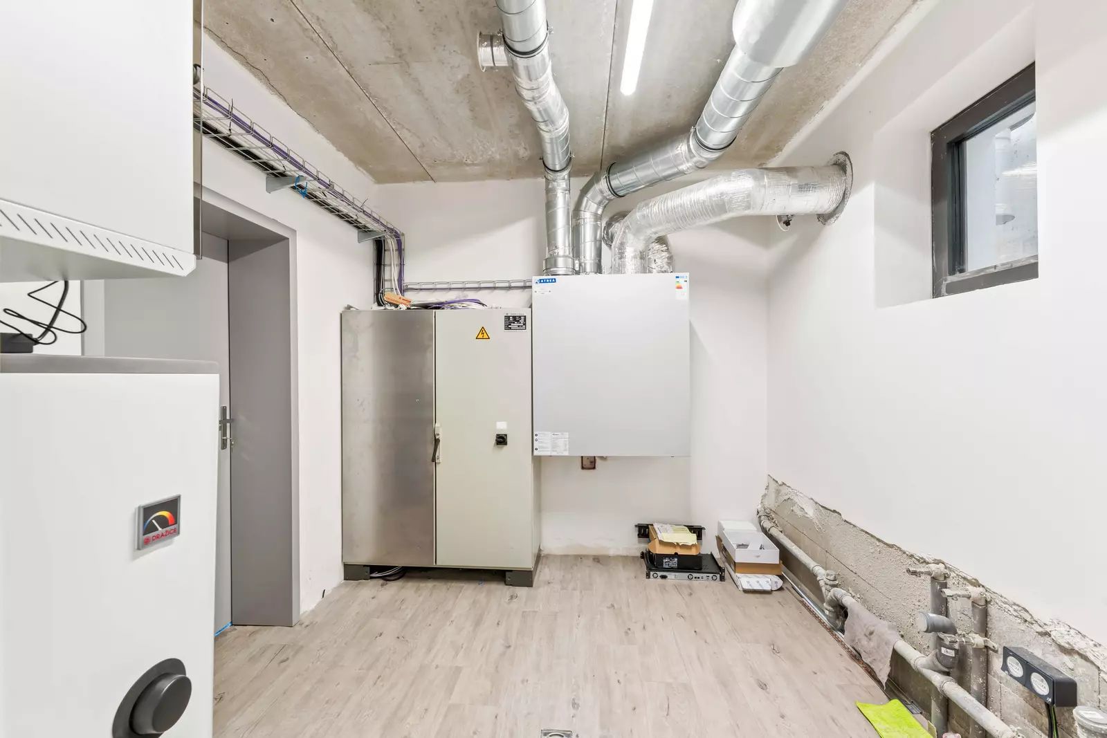 Chytrý dům s chytrou domácností. Samozřejmostí je rekuperace, klimatizace, krbová tepelná vložka, podlahové vytápění, venkovní rolety, bezpečností kamerový systém, elektřina 230/380 V, obecní voda, studniční voda, obecní kanalizace.