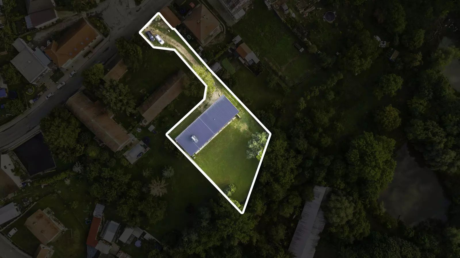 Dům je usazený na krásném rovinatém pozemku s mírně svažitým přístupem a příjezdem se zahradou se vzrostlými jehličnatými a listnatými stromy.