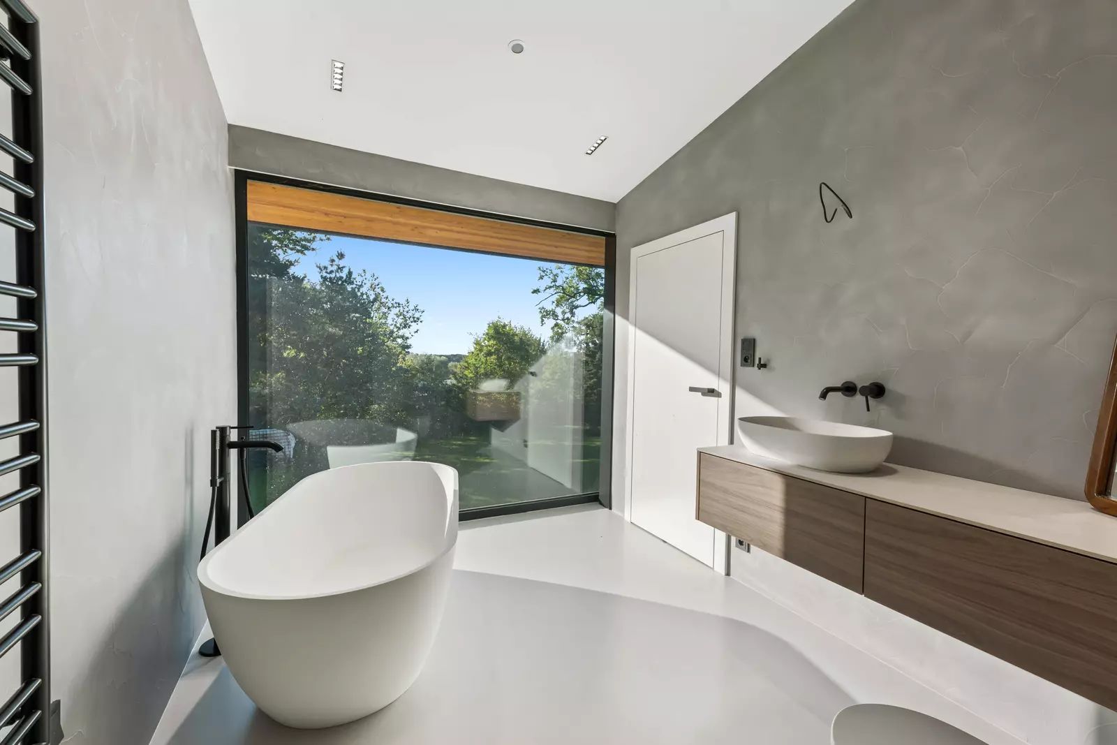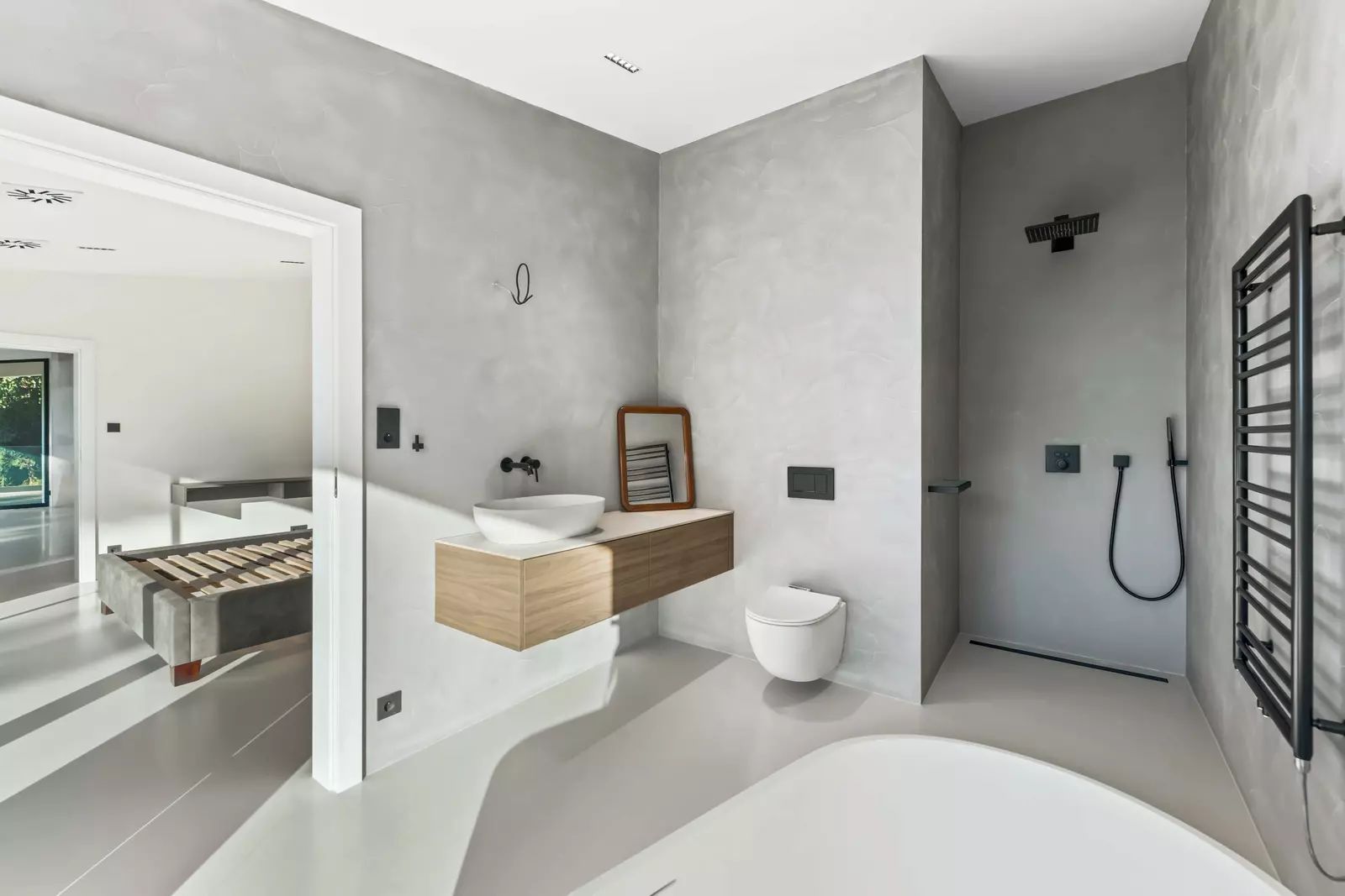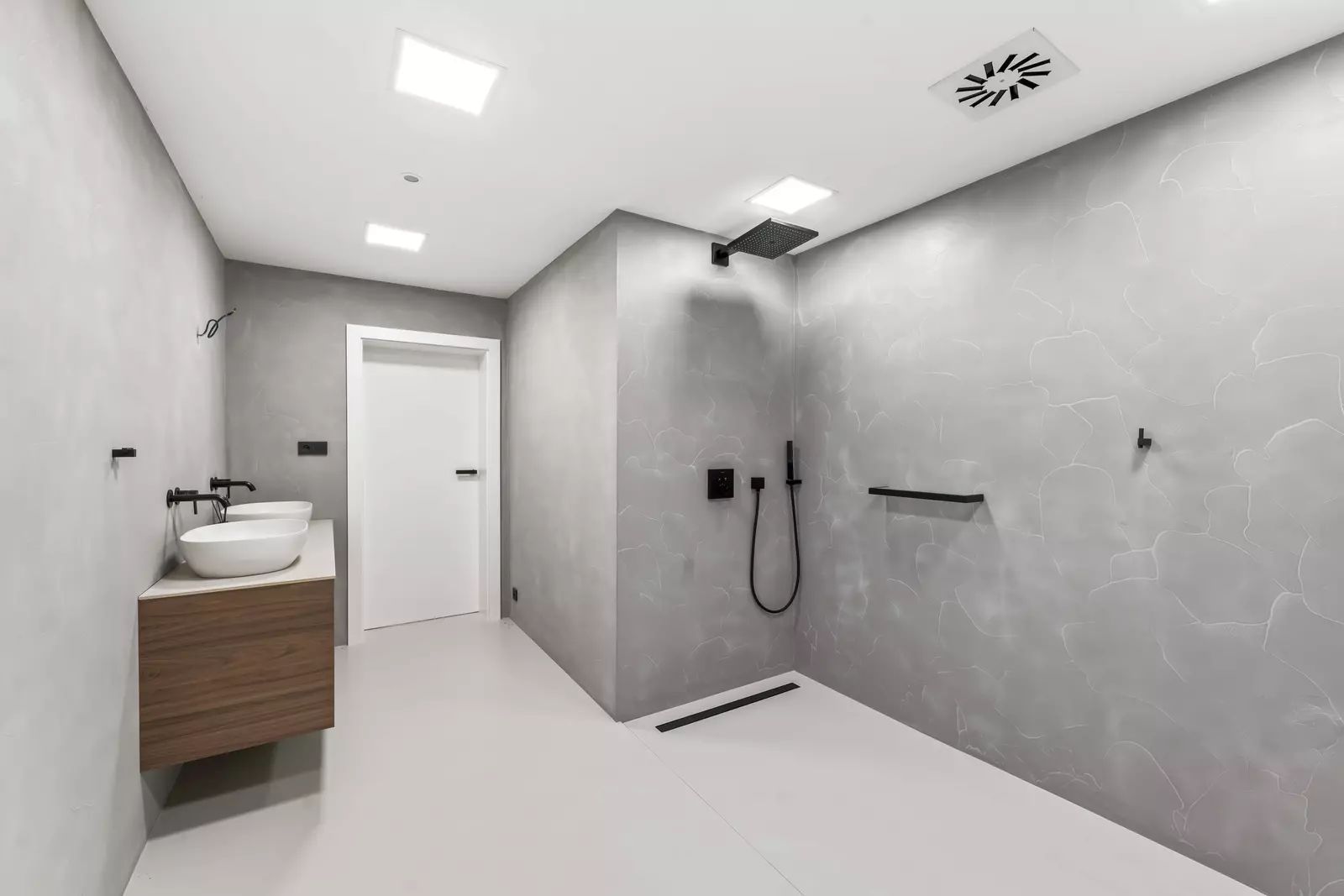 Koupelny splňují nejvyšší standardy, byl zde kladen důraz na praktičnost s vysokou dávkou elegance. Designová sanita, umyvadla na desku, solitérní vana, polyureová stěrka, dřevěný nábytek.