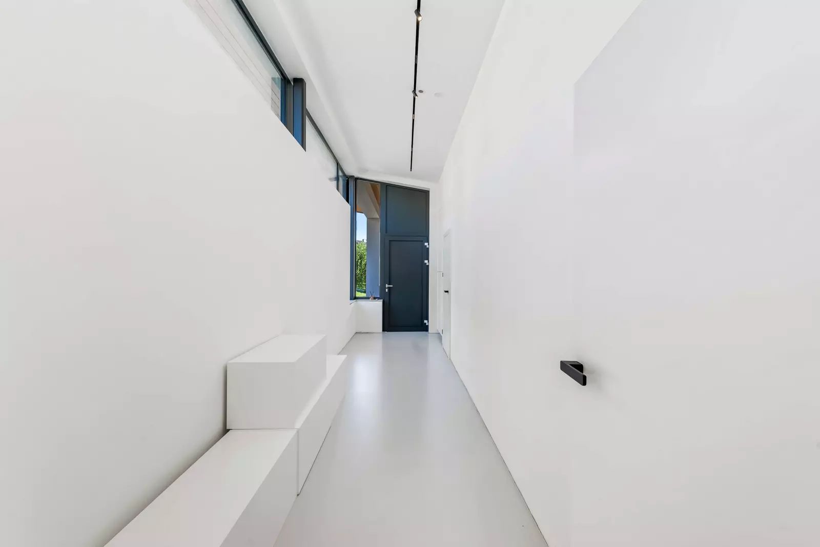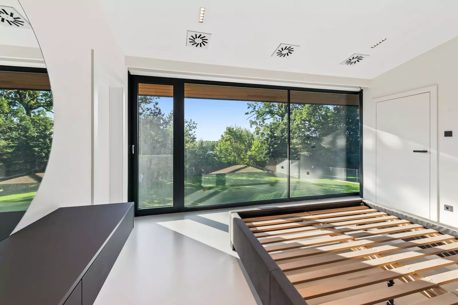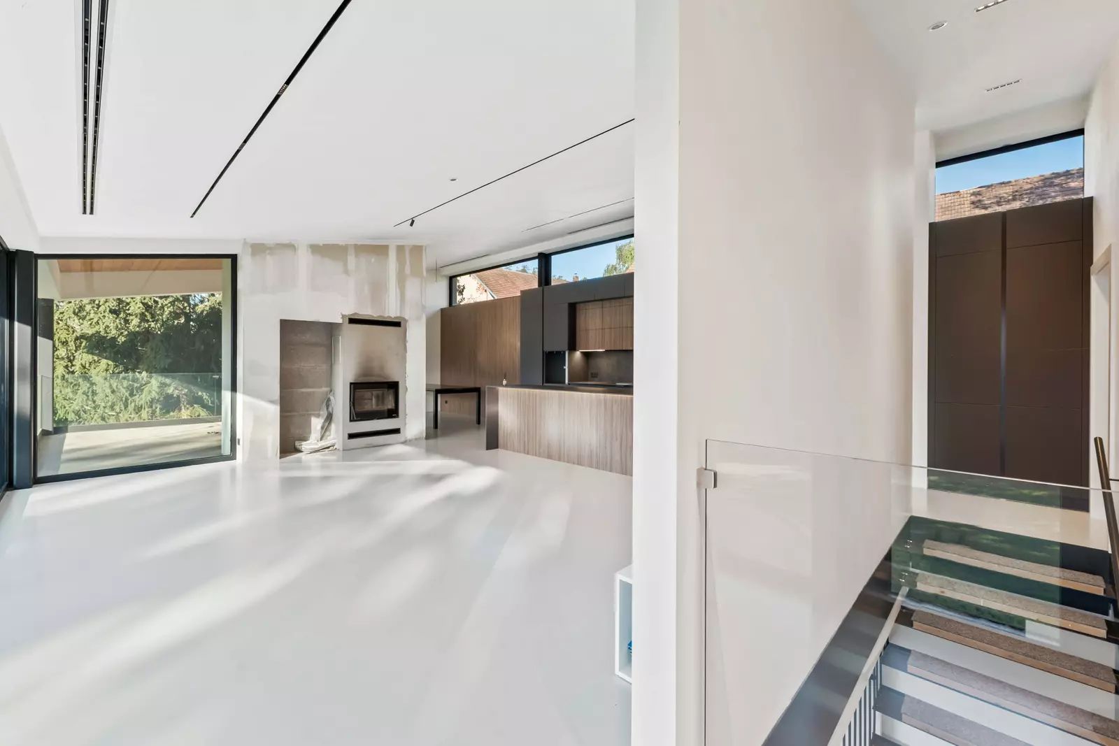 Nadčasový design, bezpečnostní prvky, velkoformátová skla, hliníkové rámy, dodávají interiéru noblesu a vpouští do domu spoustu denního světla.