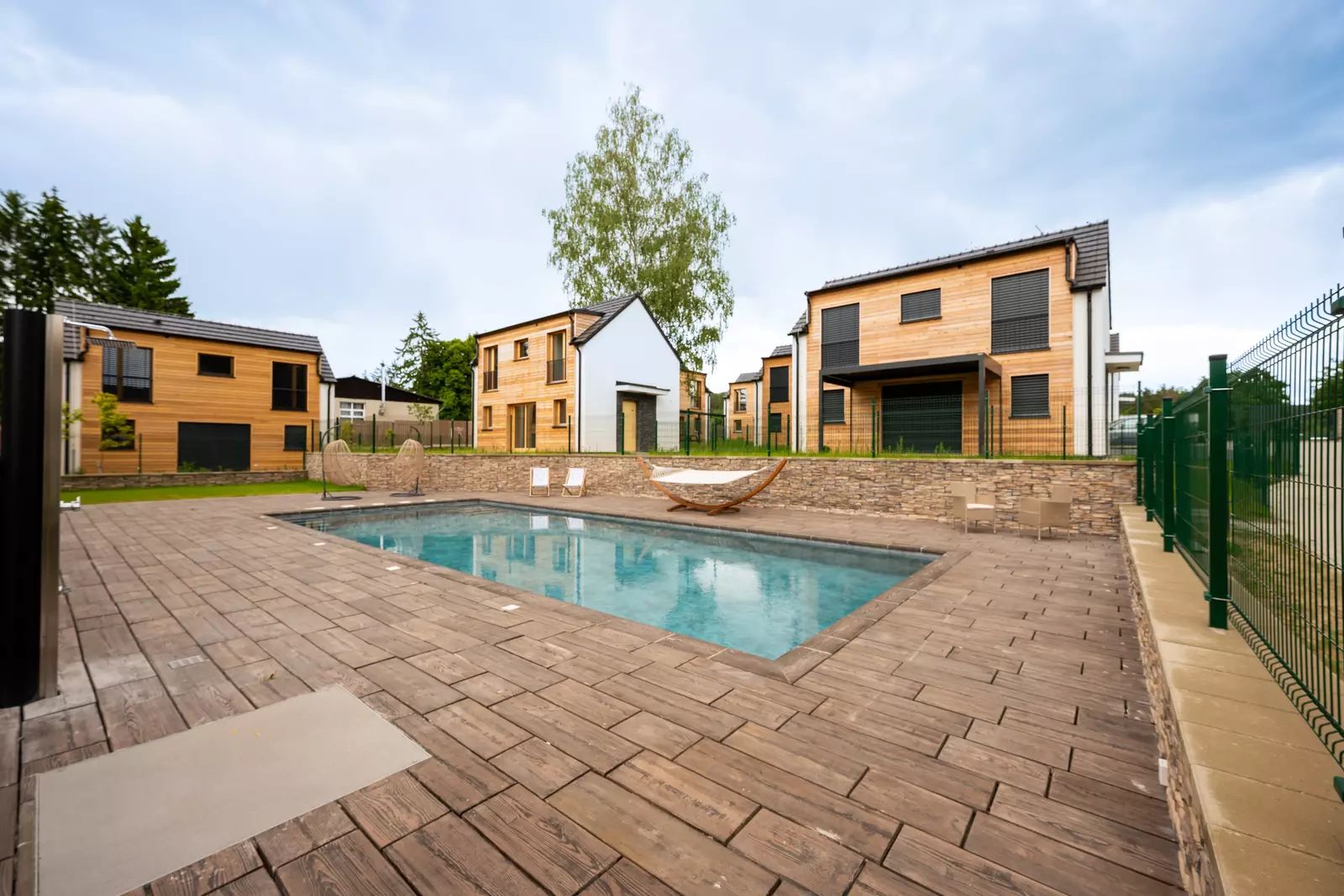 Prodej luxusní chaty k nastěhování v uzavřeném areálu s bazénem přímo u pláže Slapské přehrady