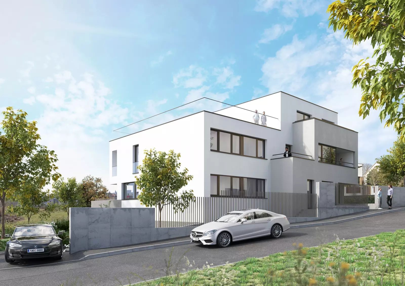 Celková užitná plocha 103,4 m² je doplněna o tři terasy o celkové rozloze 57,6 m² a privátní střešní zahradu s výhledem o 64,7 m². Vzniká tak prostor, který otevírá nové možnosti bydlení – od ranních snídaní na slunci, přes intimní večerní posezení s výhledy na vilovou čtvrť, až po možnost vytvořit si vlastní wellness či lounge zónu.