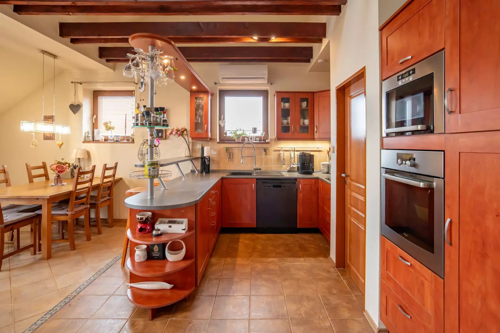 Objekt také disponuje dvěma prostornými garážemi (pro 4 vozy) a krytými parkovacími místy (pro 3 vozy), celkem 10 parkovacích míst, což je více než dostatečné pro potřeby obyvatel domu i jejich hostů. Dům je částečně podsklepen a prošel rozsáhlou rekonstrukcí, která byla dokončena v roce 2008. Nutno vyzdvihnout kvalitní provedení a zdokumentovanou rekonstrukci, která byla pojata jako rekonstrukce pro vlastní bydlení majitelů. Dům je zateplen a v květnu 2025 byl revitalizován nátěr fasády. Každá bytová jednotka disponuje vlastním kondenzačním plynovým kotlem a další z klíčových technických výhod je instalace podlahového vytápění v celém domě. Objekt splňuje PENB C. Přízemí domu je opatřeno vysoce odolnými (neroztříštitelnými) okny a dveřmi.