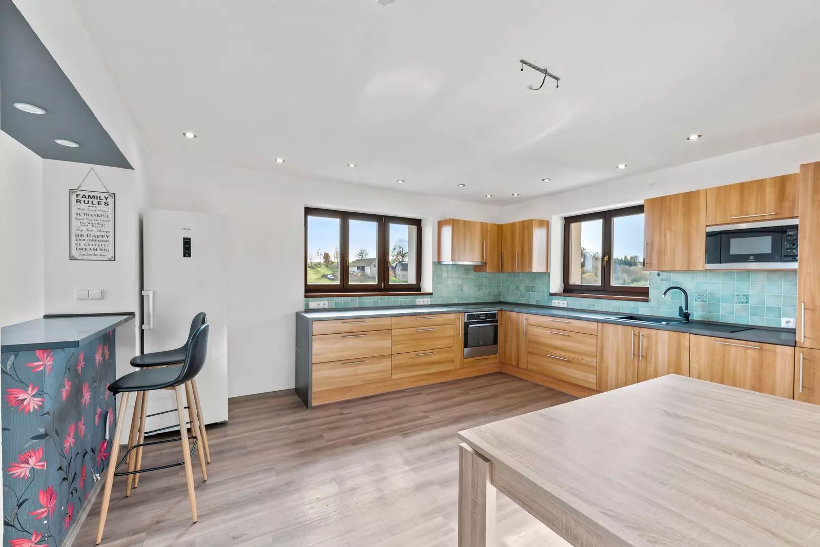 Jedná se o zděný rodinný dům. Dokončení rozsáhlé rekonstrukce a kolaudace bylo provedeno v roce 2017 (2016). Při této rekonstrukci byly zachovány téměř jen obvodové stěny a nosné příčky. Ostatní je nové nebo dozděné . Lze tedy uvádět, že se jedná o dům po rozsáhlé rekonstrukci. Dům je ve velmi dobrém stavu běžného opotřebení. Je zde zachovalá kuchyňská linka vč. vestavných spotřebičů a dále v některých pokojích i vestavěné skříně. Převážně se jedná o nezařízené místnosti. Je tedy možné si interiér doladit celkově dle Vašich představ a požadavků. Výhodou jsou i vedlejší místnosti jako šatny/komory pro úložný prostor v podkroví.