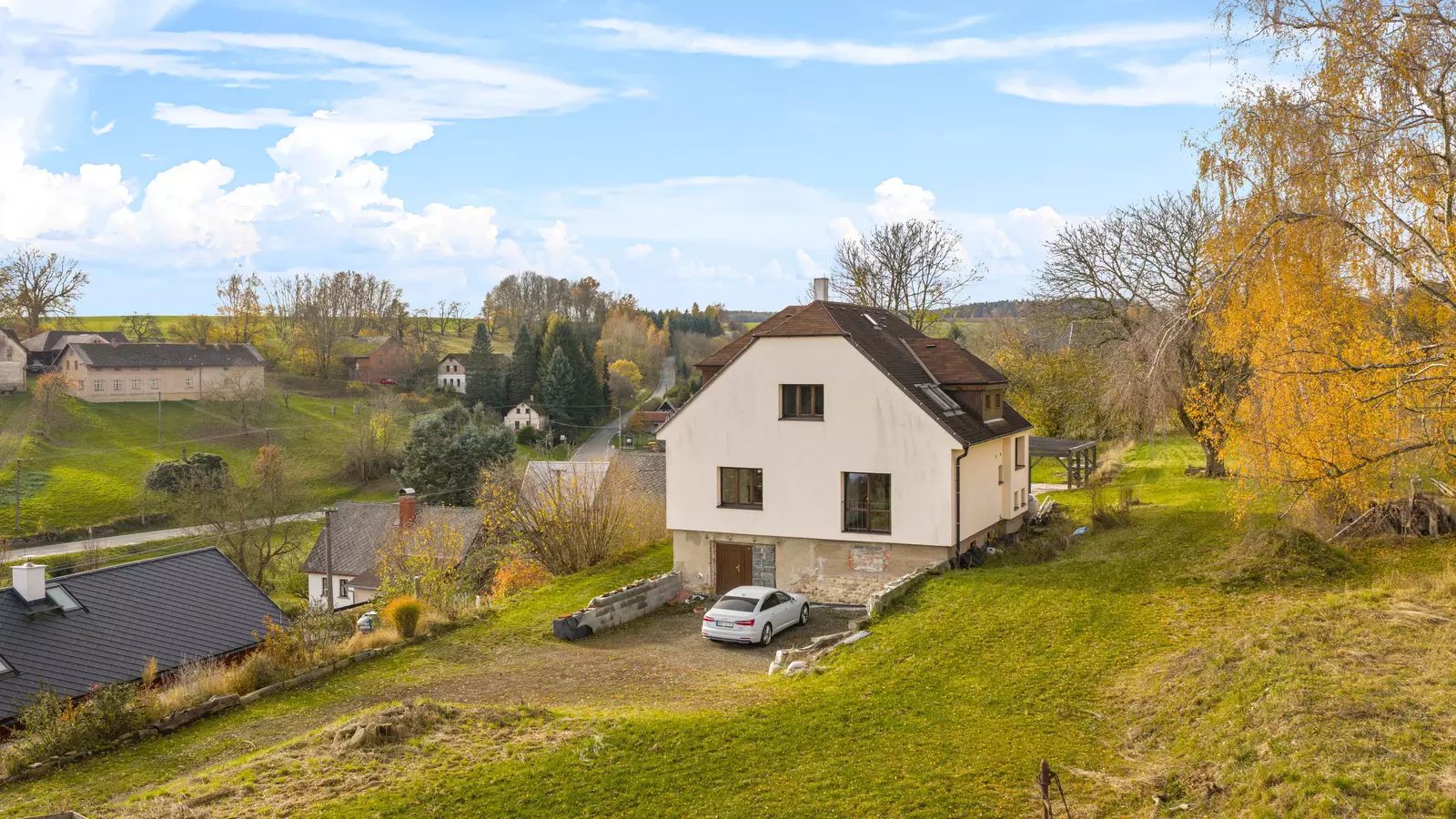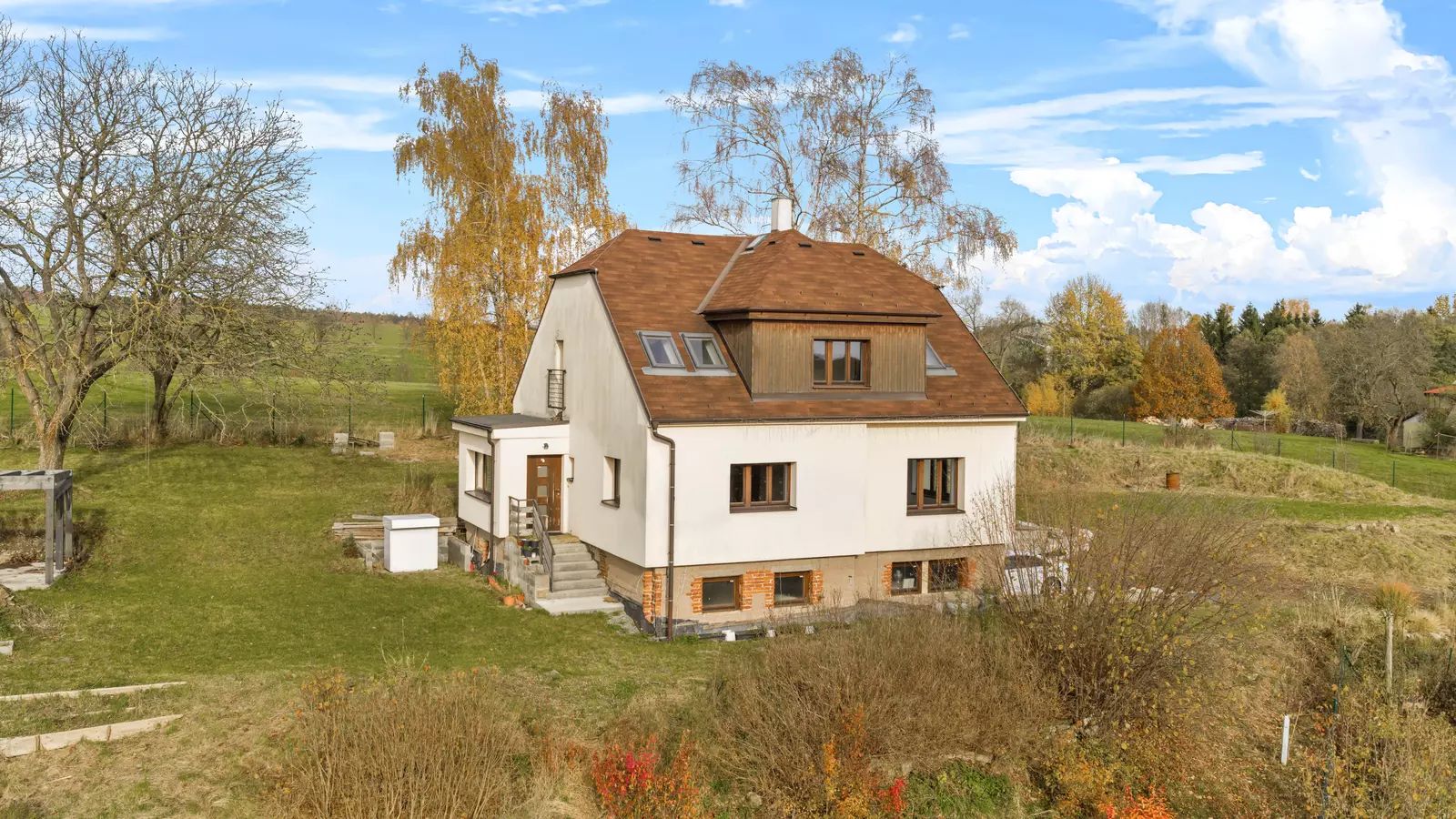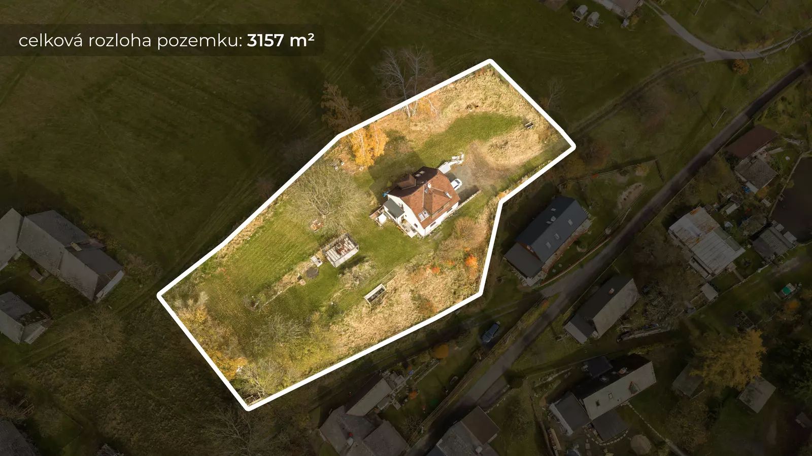 Poloha pozemku a rodinného domu je v horní části obce až dá se říci s dominantním umístěním. Jsou odtud krásné výhledy do obce i okolí. Pozemek je rovinatý jen místy mírně svažitý či kaskádovitý. Nabízí jak soukromí, tak široké využití pro realizaci okrasné zahrady či malého sportovního vyžití. Na pozemku je nová dřevěná pergola s betonovými základy. Celkově je pozemek oplocený a vjezdová brána je připravena k realizaci. Je zde i přívod el. energie.