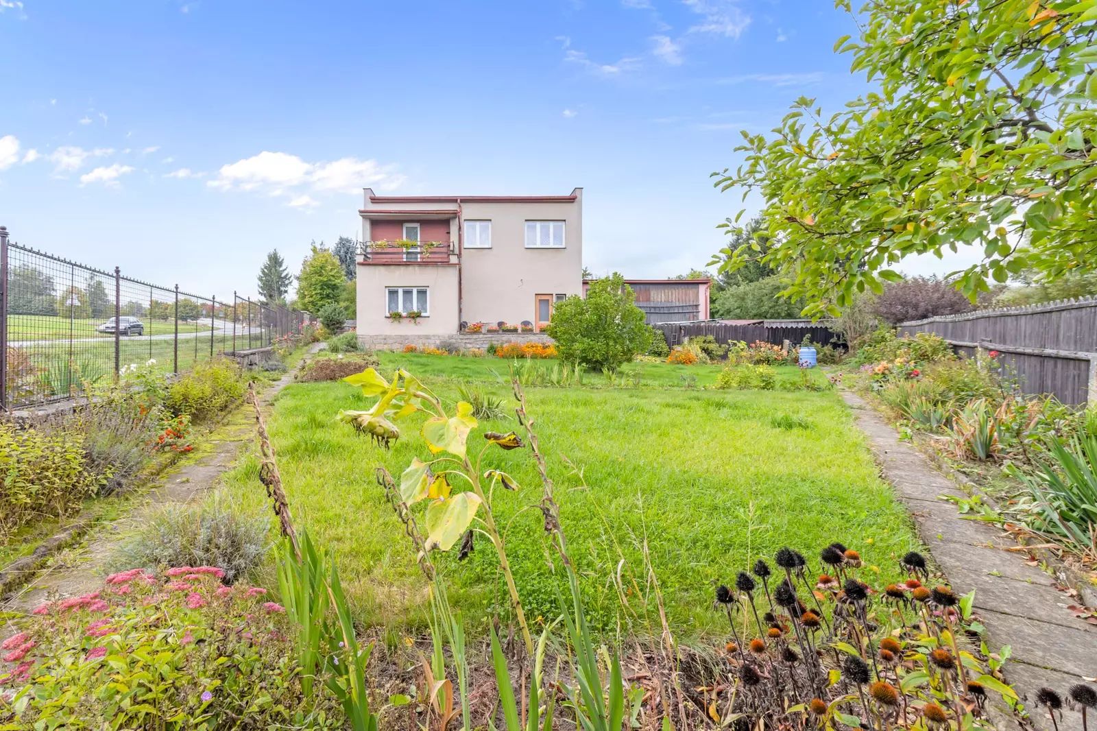 Dispozičně je vila řešena jako 6+1 s příslušenstvím a nabízí dostatek prostoru jak pro komfortní rodinné bydlení, tak pro kombinaci bydlení s podnikáním či kreativní činností. V domě se nachází několik prostorných obytných místností s dostatkem denního světla, kuchyně, sociální zázemí a další technické a skladovací prostory. Součástí objektu je rovněž hospodářské zázemí a navazující vedlejší stavby, které rozšiřují možnosti využití nemovitosti.