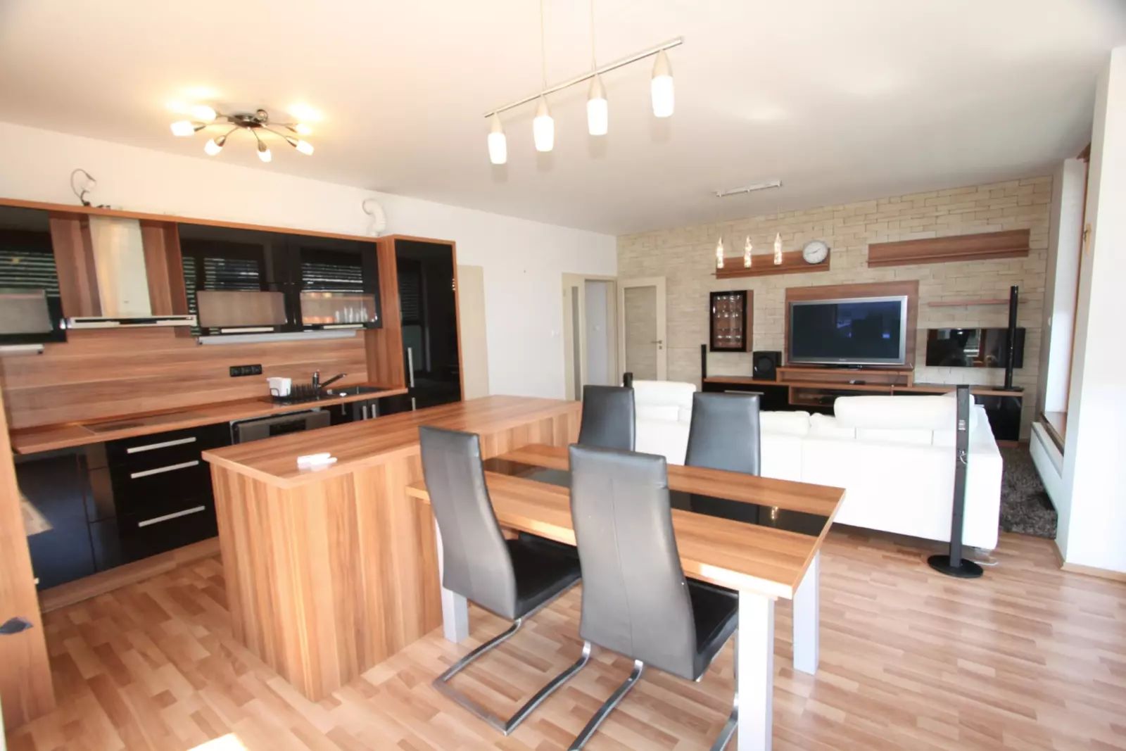 Vybavení bytu tvoří kuchyňská linka s ostrůvkem včetně všech spotřebičů, podlahy jsou laminátové a přírodními tóny, které ladí k rámům moderních eurooken. Vkusně provedené koupelny včetně koupelnového nábytku. Velké skříně v chodbě a v ložnici, police v komorách. Na oknech jsou žaluzie také předokenní automatické rolety. Vytápění a ohřev vody je centrální.