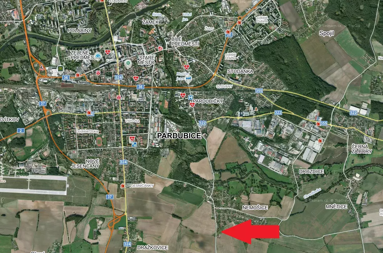 Prodej stavebních pozemků (6736 m²), Pardubice Nemošice (okr. Pardubice)