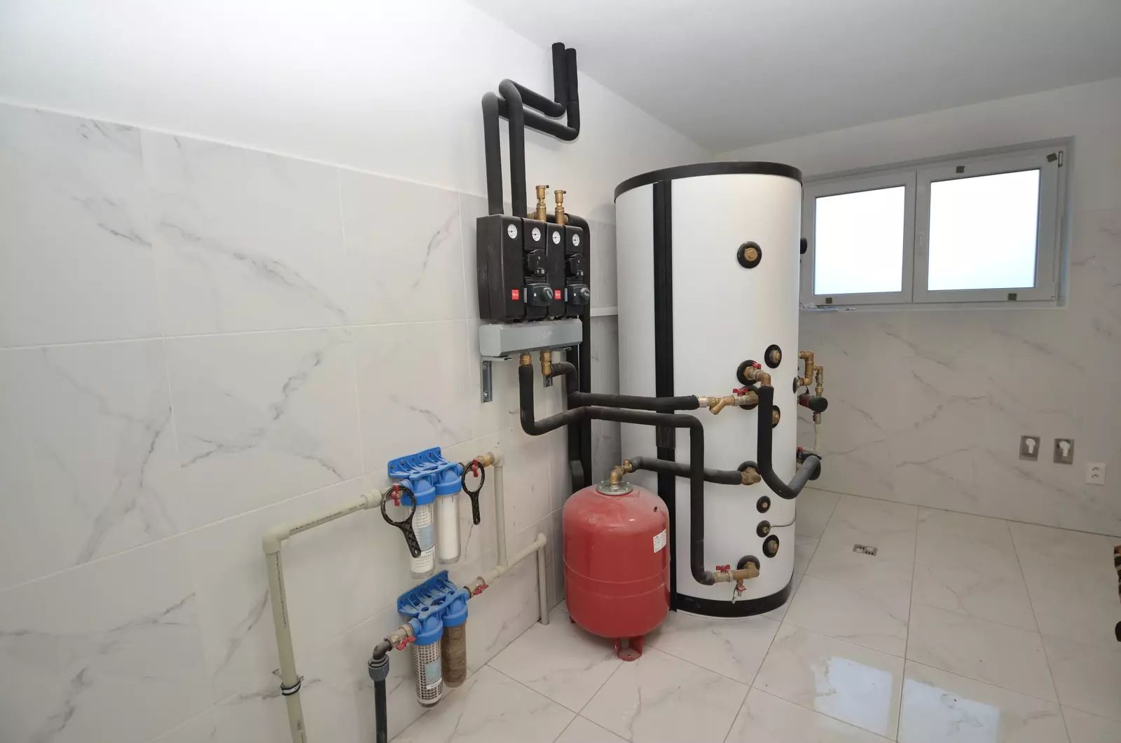• technická místnost s tepelným čerpadlem a zásobníkem na teplou vodu