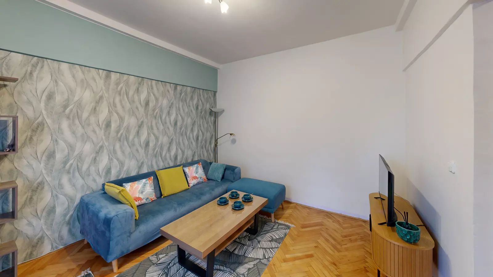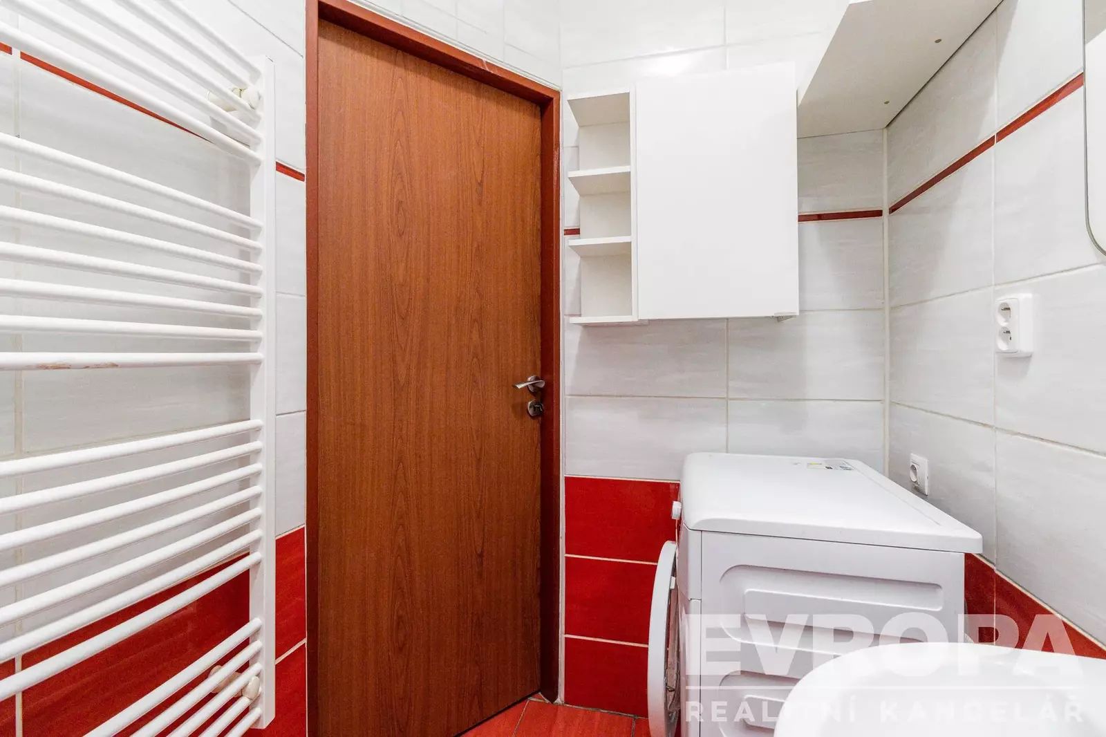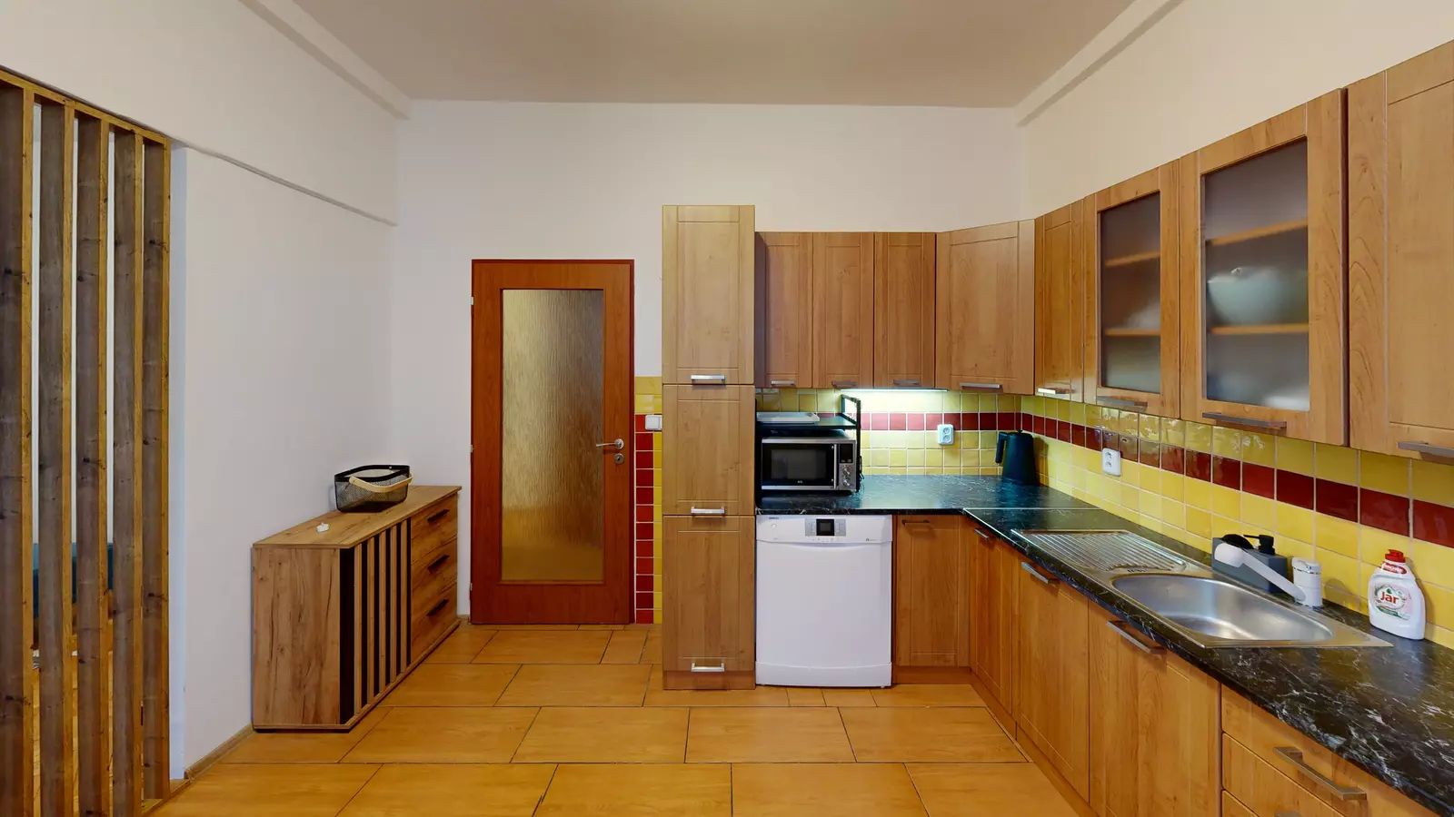 Byt nabízí dobré dispoziční rozložení. Z prostorné chodby je vstup do obou obytných místností, ale také do koupelny a WC, které je samostatné. Celková obytná plocha bytu je 59 m², přičemž k bytu náleží i balkón o rozloze 1,02 m² a sklep o rozloze 1,38 m². Dále je možné využívat dalších společných prostor jakými jsou: kočárkárna, sušárna a kolárna. Což přidává další úložný prostor.