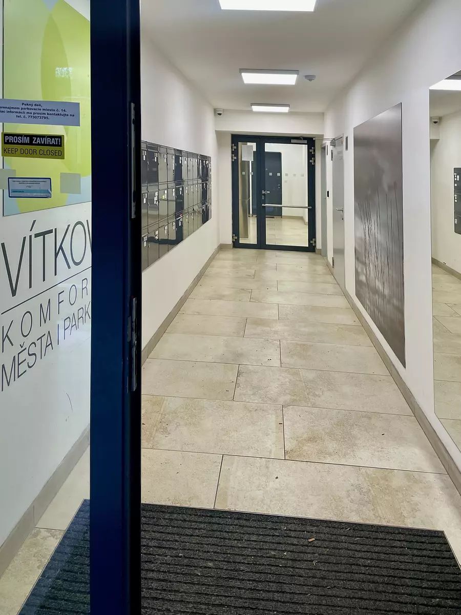 Vstupní prostory domu jsou v luxusním provedení, chodby jsou obložené kvalitní dlažbou, dům má bezpečnostní kamerový systém a výtah KONE. Bytová jednotka je vybavena okny, dveřmi, obklady, podlahami a dlažbou nadstandardní kvality italských a německých výrobců.