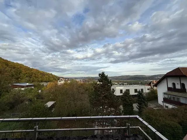 2. NP: V patře se nachází tři samostatné ložnice (16 m², 9,6 m², 9,3 m²) a koupelna. Hlavní ložnice nabízí dostatek prostoru. Z hlavní ložnice je vstup na balkon (2,7 m²) s krásným výhledem do údolí a do města.