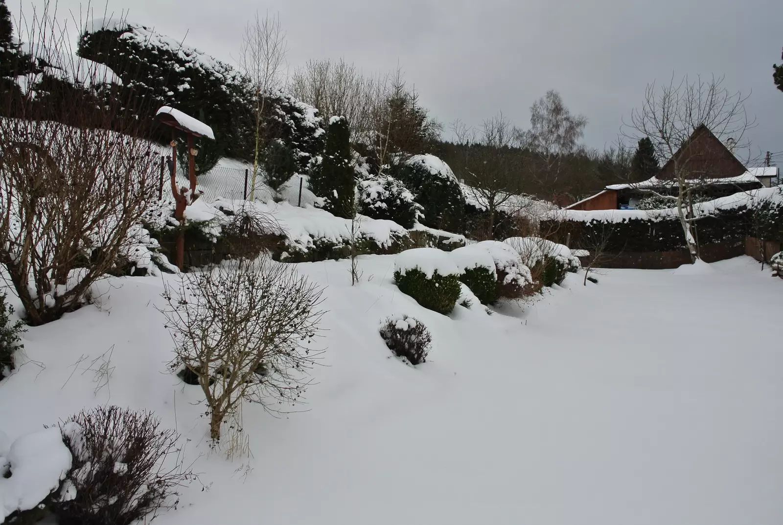 Zahrada o rozloze 850 m² nabízí mnoho krásných zákoutí, terasy, kamenné zídky a dostatek soukromí. K domu patří krytá terasa s kamenným grilem – perfektní pro letní večery s rodinou či přáteli. Na pozemku nechybí ani prostorná kůlna na nářadí a zahradní techniku.