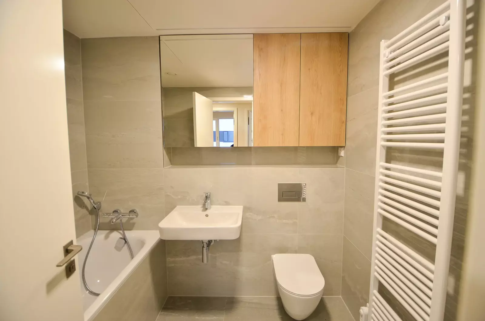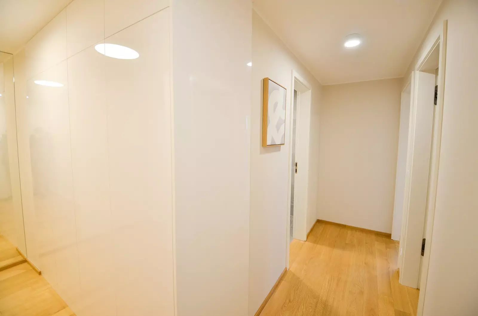 Byt se nachází ve 4.NP šestipatrového domu s výtahem. Provedení bytu je ve vysokém standardu, podlahy z pravého dřeva v obytných místnostech, koupelna s velkoformátovými keramickými obklady. Součástí vybavení koupelny je také žebříkový radiátor a zařizovací předměty značky Hansgrohe a Villeroy & Boch. Byt je dále vybaven rekuperací a předokenními žaluziemi. Vestavená skříň v celé vstupní chodbě a skříň přes celou délku stěny v ložnici nabízí ohromné množství úložného prostoru.