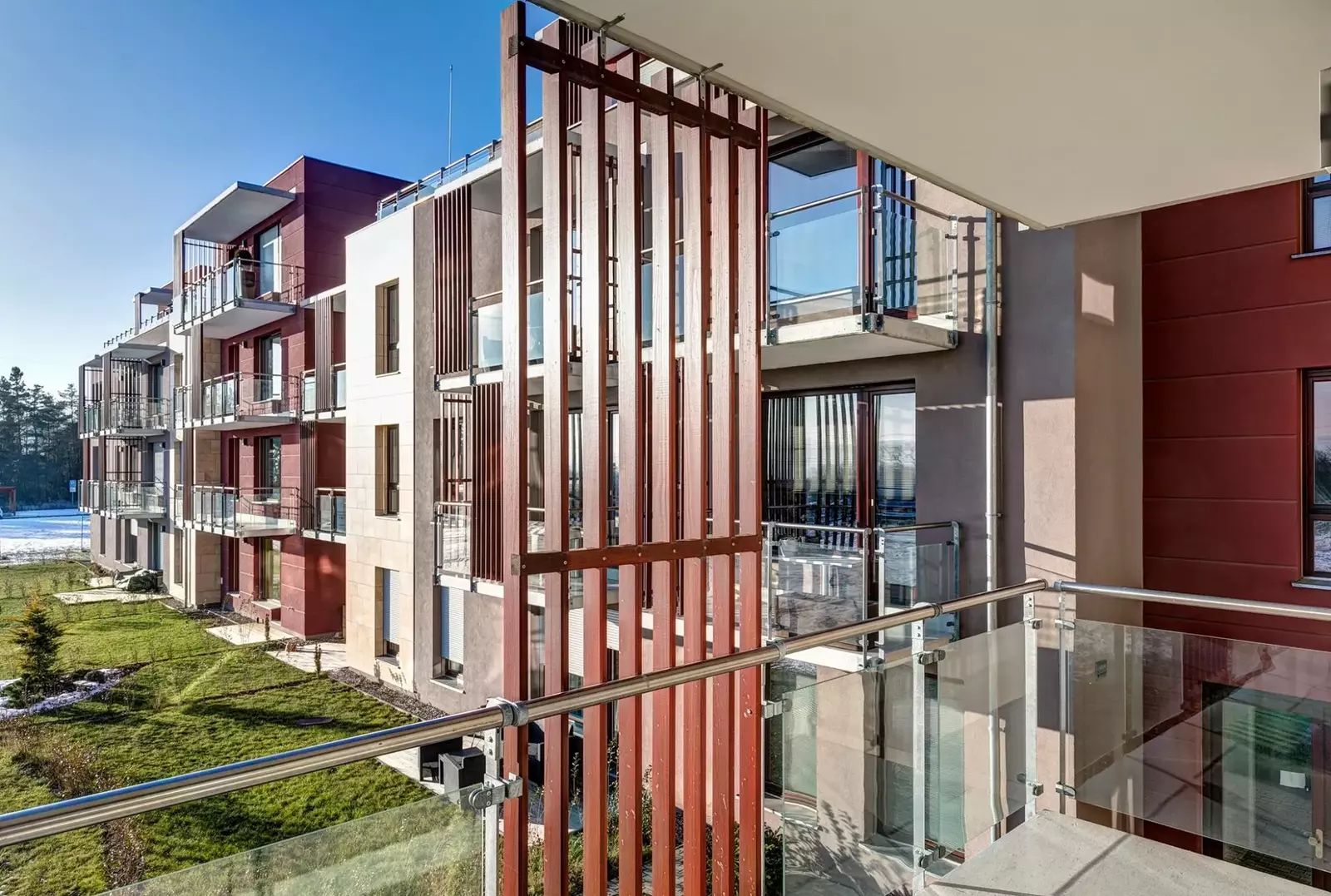 Dům má výtah a k bytu náleží vlastní parkovací stání u domu. Díky umístění v uzavřeném areálu je zde zajištěna vysoká úroveň soukromí a bezpečí.