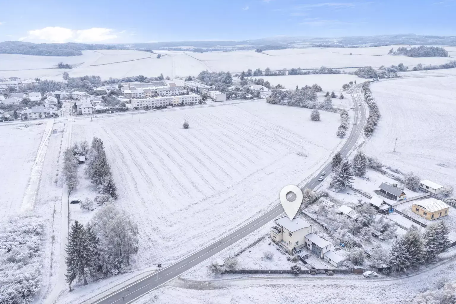 Funkcionalistická vila architekta Lameše se nachází v tiché části Telče, jen několik kroků od zámeckého parku. Stavba v dispozici 6+1 si zachovala autentické linie, rovnou střechu a původní schodiště. Vila není památkově chráněna, což umožňuje volnější přístup k případné rekonstrukci. Vstupní prosklená veranda vede do prostorné haly, z níž se vchází do kuchyně orientované do zahrady i na východní terasu, a dále do velkého obývacího pokoje s navazující pracovnou.