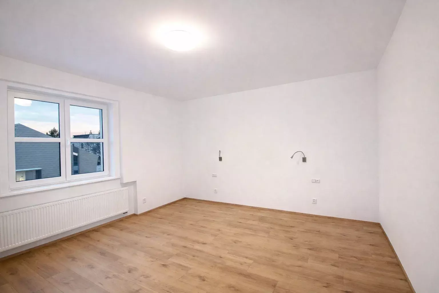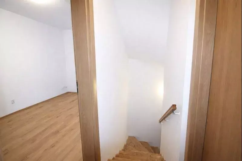 Ve 2. nadzemním podlaží jsou umístěny dvě neprůchozí ložnice a koupelna se sprchovým koutem a WC. V domě jsou na podlahách položeny plovoucí podlahy a dlažba, které podtrhují jednotný a moderní charakter interiéru. Vytápění domu je řešeno plynovým kotlem.