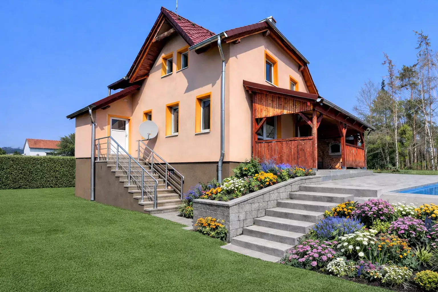 Hledáte rodinné bydlení v poklidném prostředí přesto nedaleko Olomouce? Nabízíme na prodej prostorný rodinný dům v obci Bystročice situovaný na pozemku o celkové rozloze 747 m². Tento samostatně stojící dům, kolaudovaný v roce 2011, nabízí dispozici 5+1 s celkovou obytnou plochu 130 m² rozprostírající se ve dvou nadzemních podlažích. Užitková plocha nemovitosti je 245 m², zahrnující i velký sklep s rozlohou 90 m² a garáž o velikosti 25 m². K domu patří také prostorná zahrada o rozloze 634 m², která poskytuje dostatek místa pro relaxaci, hry s dětmi nebo pěstování zeleně. Exteriér domu je doplněn o terasu (24 m²) s grilem a udírnou, která je ideální pro letní barbecue večírky nebo jen pro odpočinek s rodinou a přáteli.