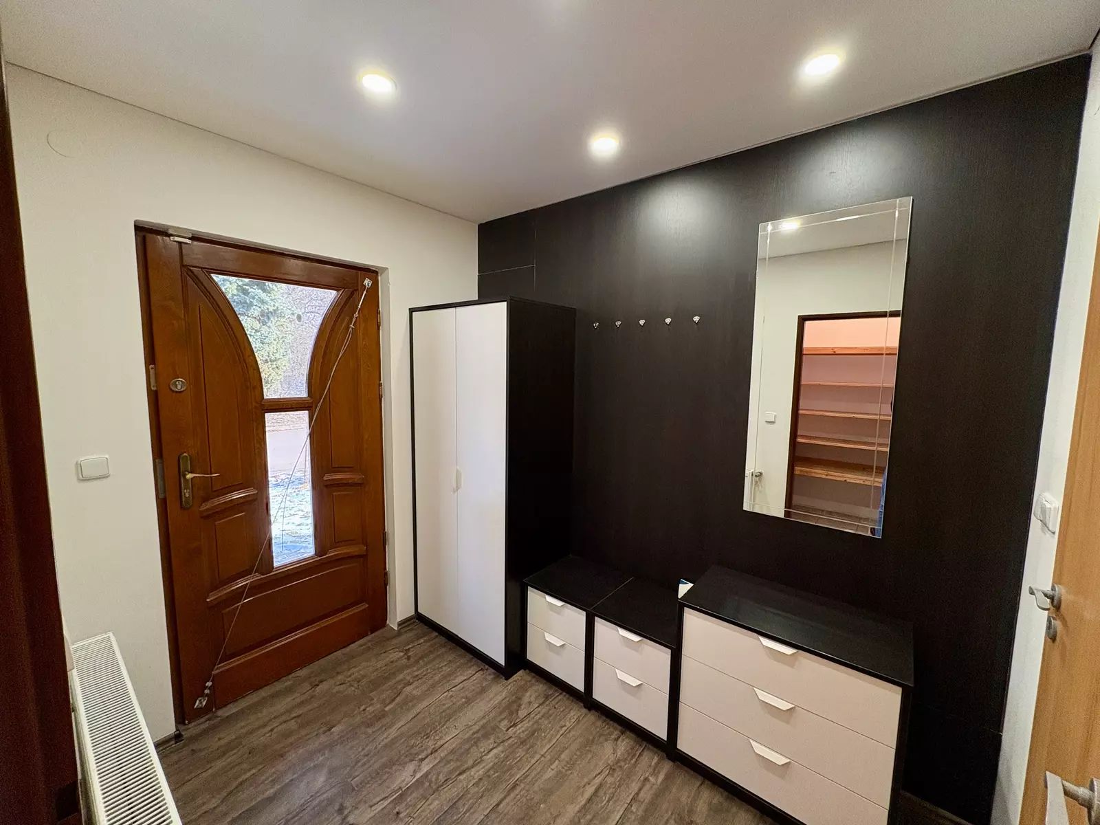 Tento dům se pyšní velmi promyšlenou dispozicí, která odděluje společenskou část od soukromé zóny v patře. Hned po vstupu vás přivítá praktické zádveří s přilehlou komorou, která je ideální pro uložení sezónních věcí či potravin. Z centrální haly se schodištěm se vchází do všech částí přízemí: