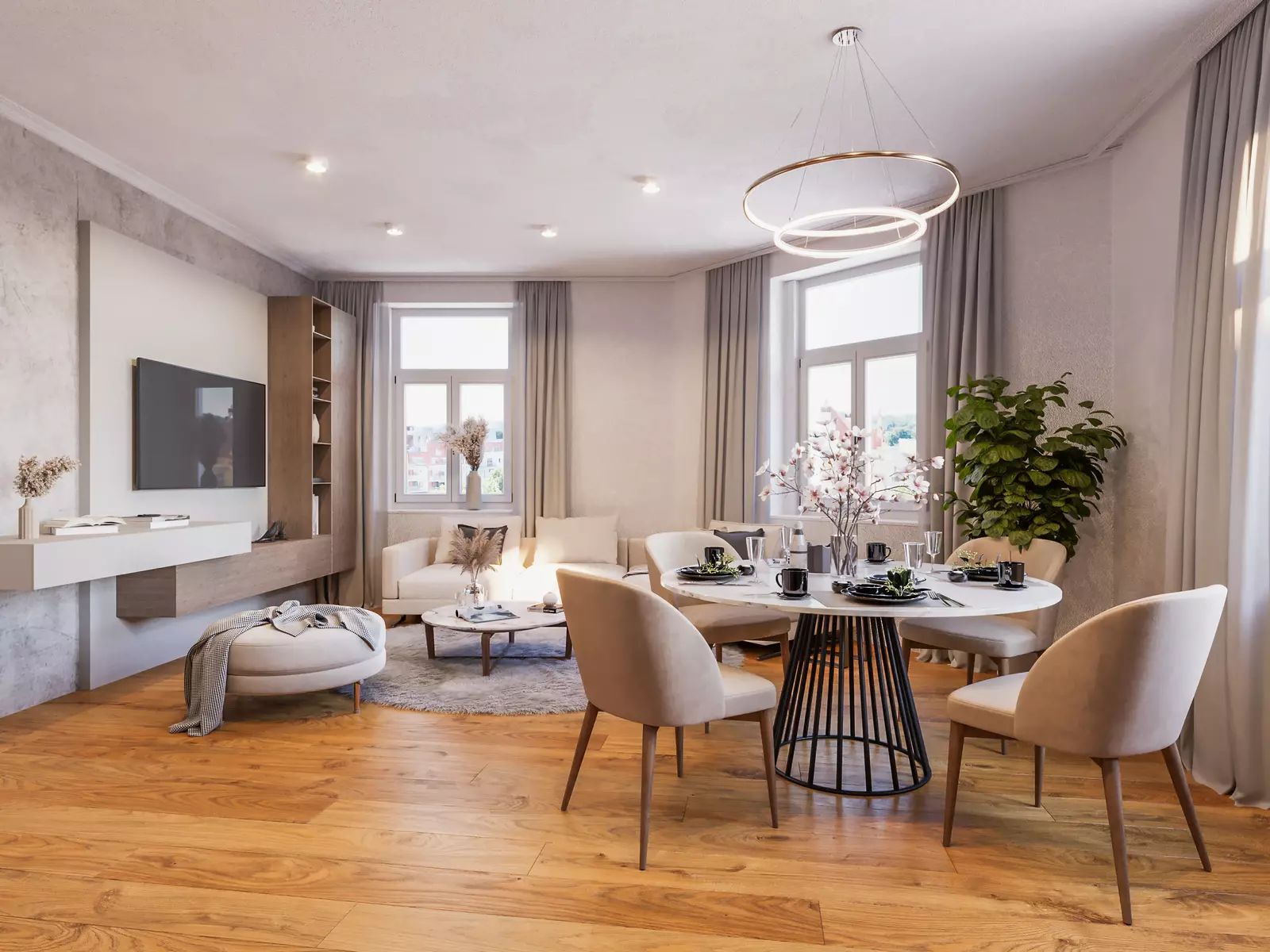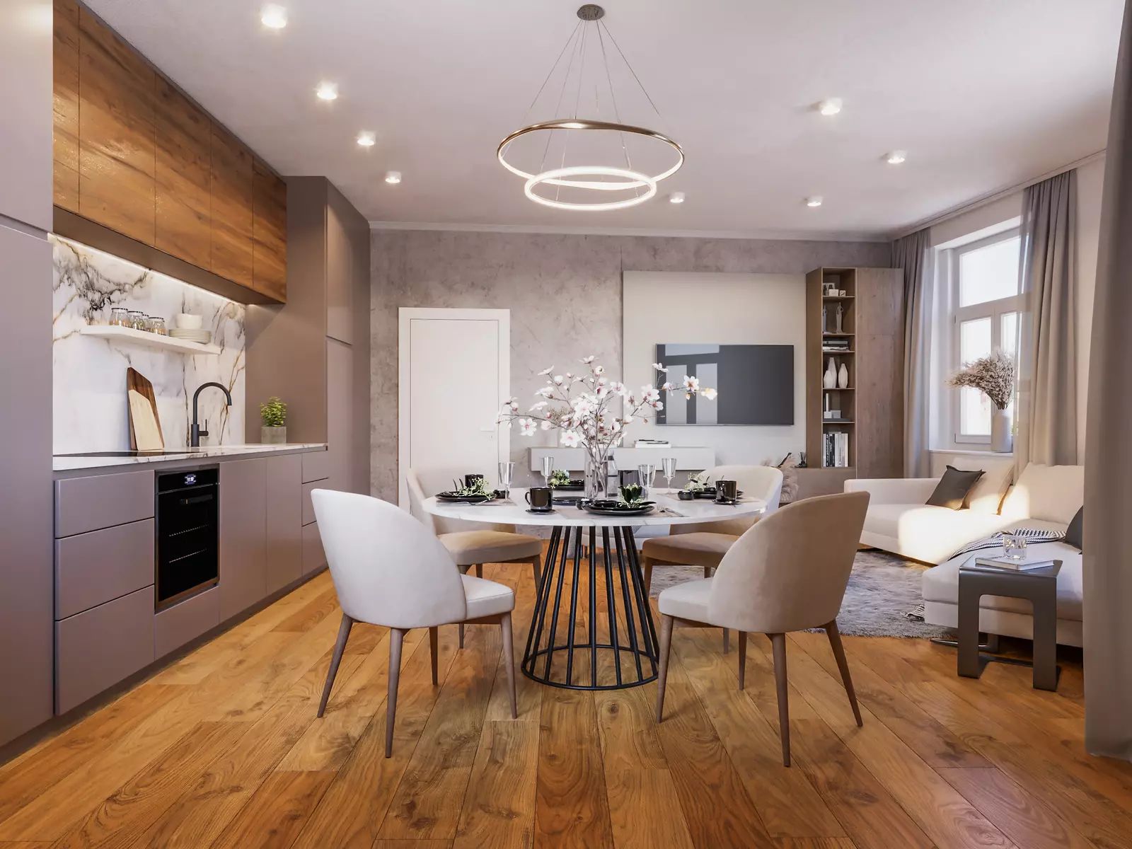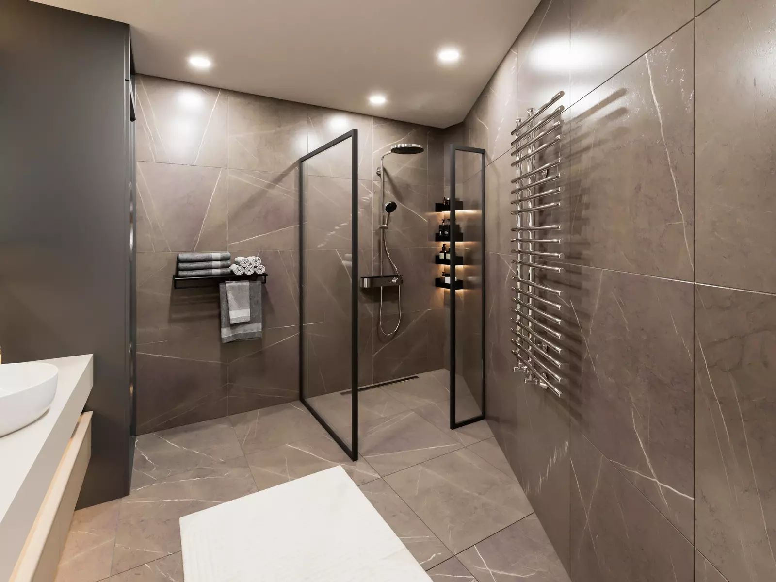 Provedení bytu je ve vysokém standardu, 3 vrstvé podlahy z pravého dubového dřeva v obytných místnostech, koupelna s velkoformátovými keramickými obklady od italské značky Del Conca. Součástí vybavení koupelny je také žebříkový radiátor a zařizovací předměty značky Vitra a Grohe. Byt je dále vybaven okny s izolačním sklem.