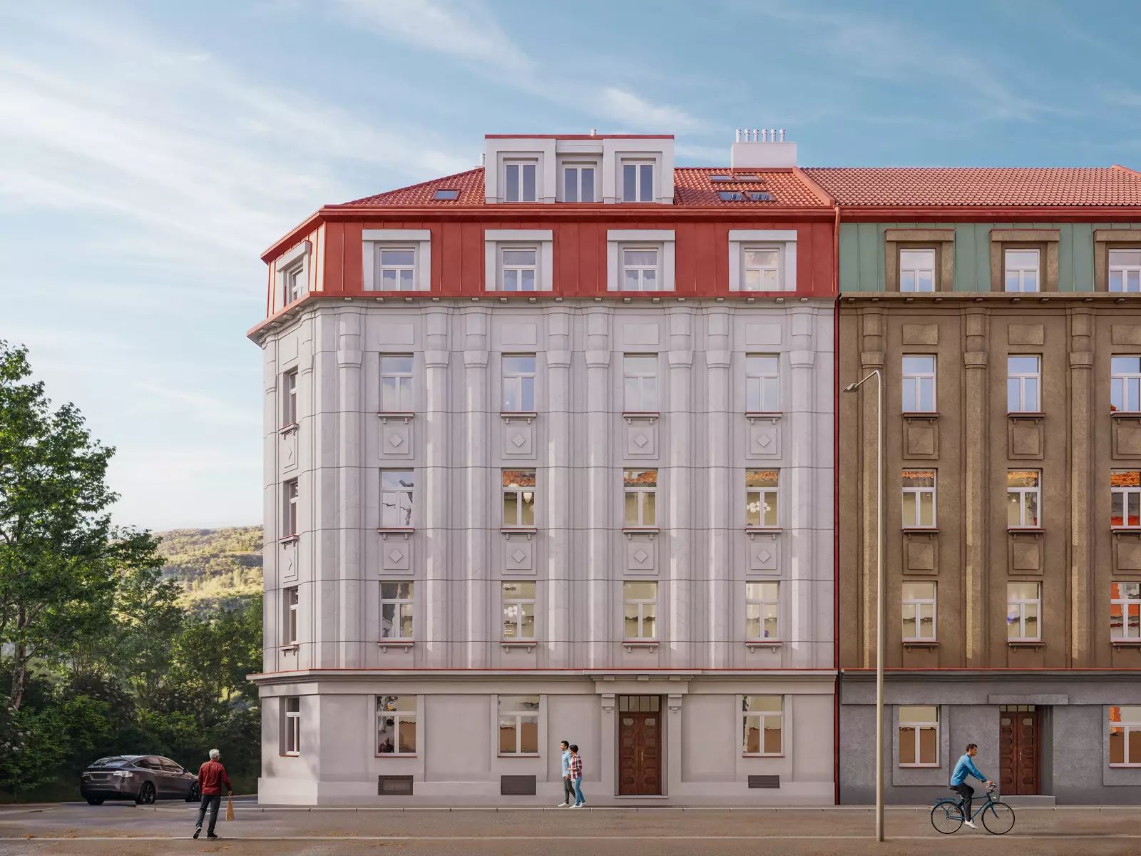 Dům se nachází na nárožní parcele, kterou svírají ulice Magistrů a Pod Stárkou. Skvělou dopravní dostupnost zajišťuje tramvajová a autobusová zastávka umístěna jen pár kroků od domu. Plánovaná zastávka metr D na Náměstí Bratří Synků nabídne ještě lepší dostupnost centra města. Přilehlý park Jezerka a Tyršův vrch vybízejí k příjemným procházkám.