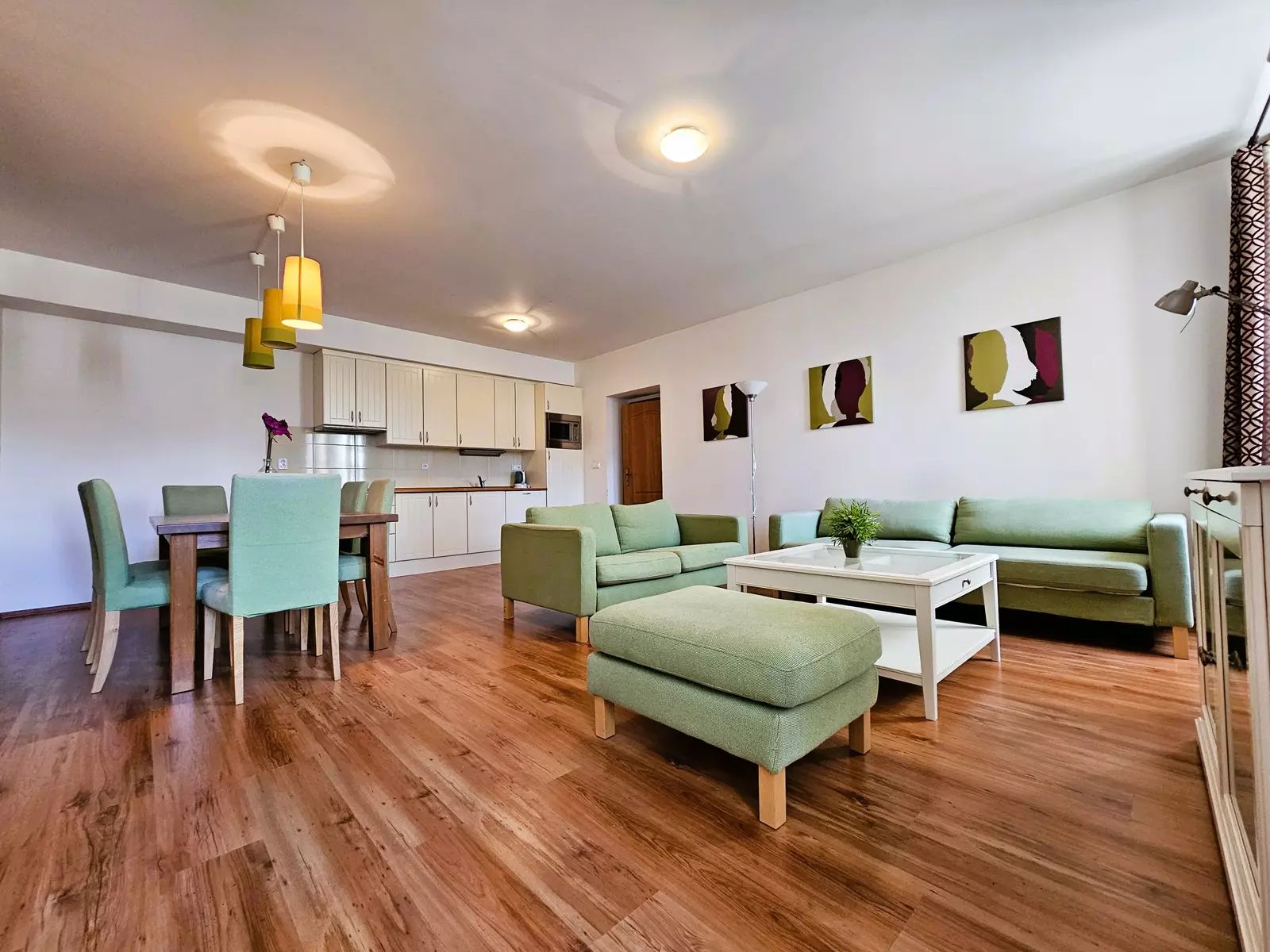 Byt je dispozičně řešen jako 2+kk, plocha bytu činí cca 68 m2 a vstup do jednotlivých místností je z centrální vstupní chodby. Součástí bytu je i zděný sklep o velikosti 2 m2. Parkování je možné na sdíleném parkovišti u domu.