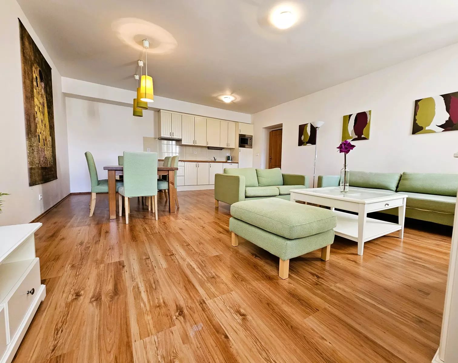 Byt je vybavený nábytkem a moderními spotřebiči včetně elektrické varné desky, mikrovlnné trouby, digestoře, lednice, pračky a myčky, což novým nájemníkům poskytuje vysoký komfort bydlení. Oproti fotografiím, nebude ložnice vybavena postelí. Vytápění bytu je řešeno plynovou kotelnou, která je umístěna v 1.NP domu.