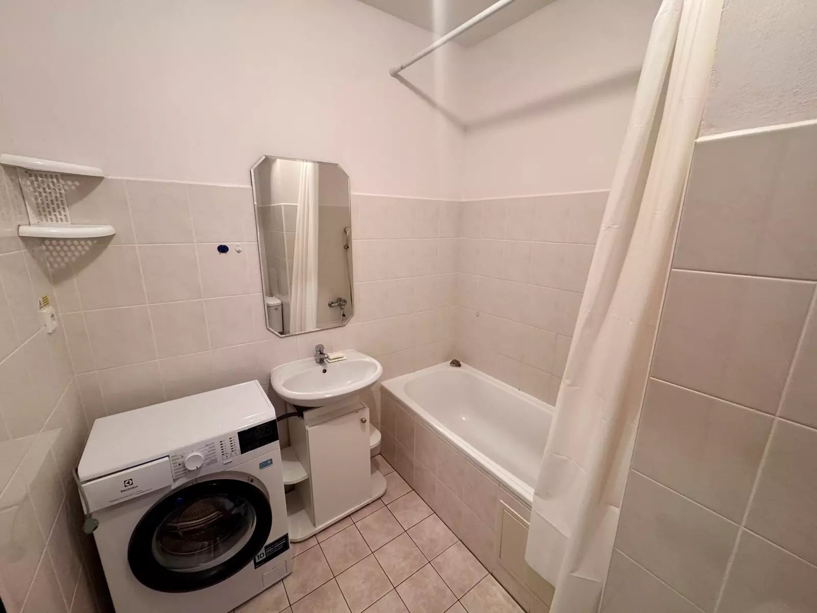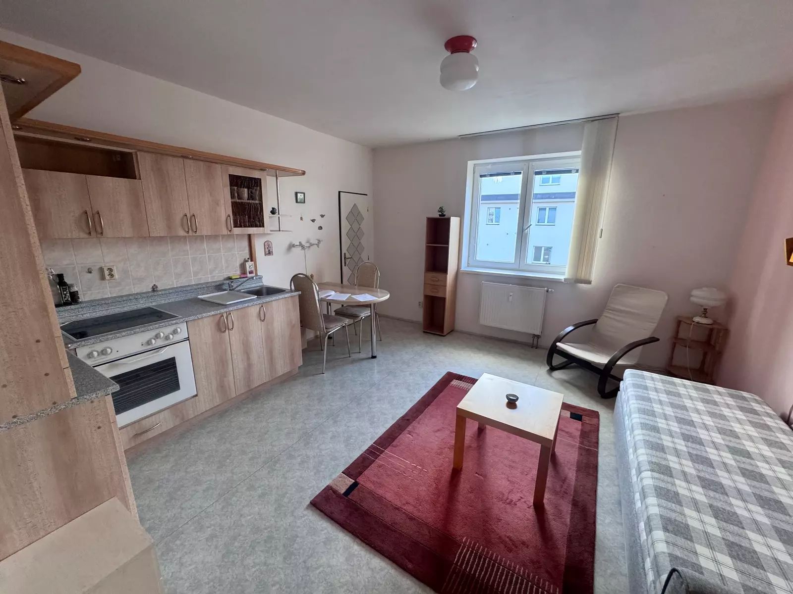 Byt je plně vybavený a připravený k okamžitému nastěhování. K dispozici je kuchyňská linka se spotřebiči (lednice, elektrická trouba, sporák) a základní nábytek. Byt se pronajímá včetně veškerého vybavení a nábytku uvedeného na fotografiích.
