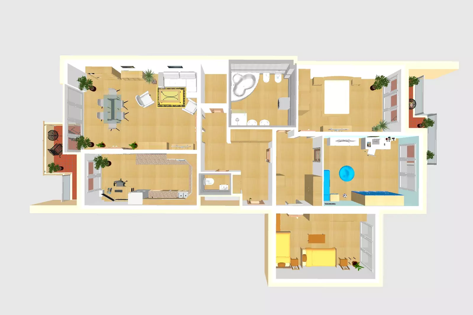 2× balkon (menší, přesná výměra neuvedena)
