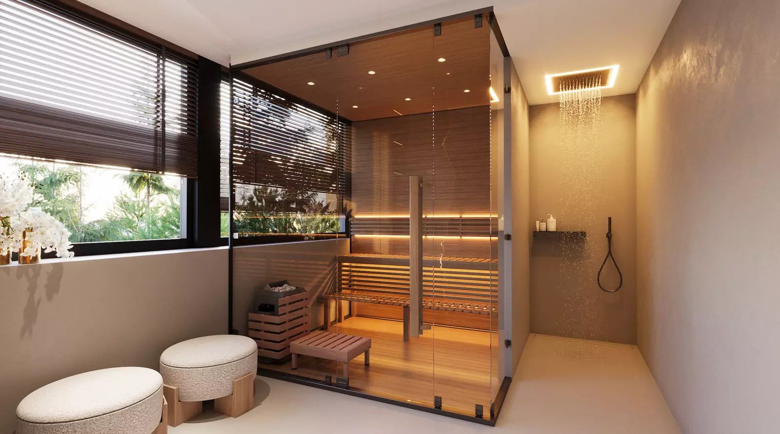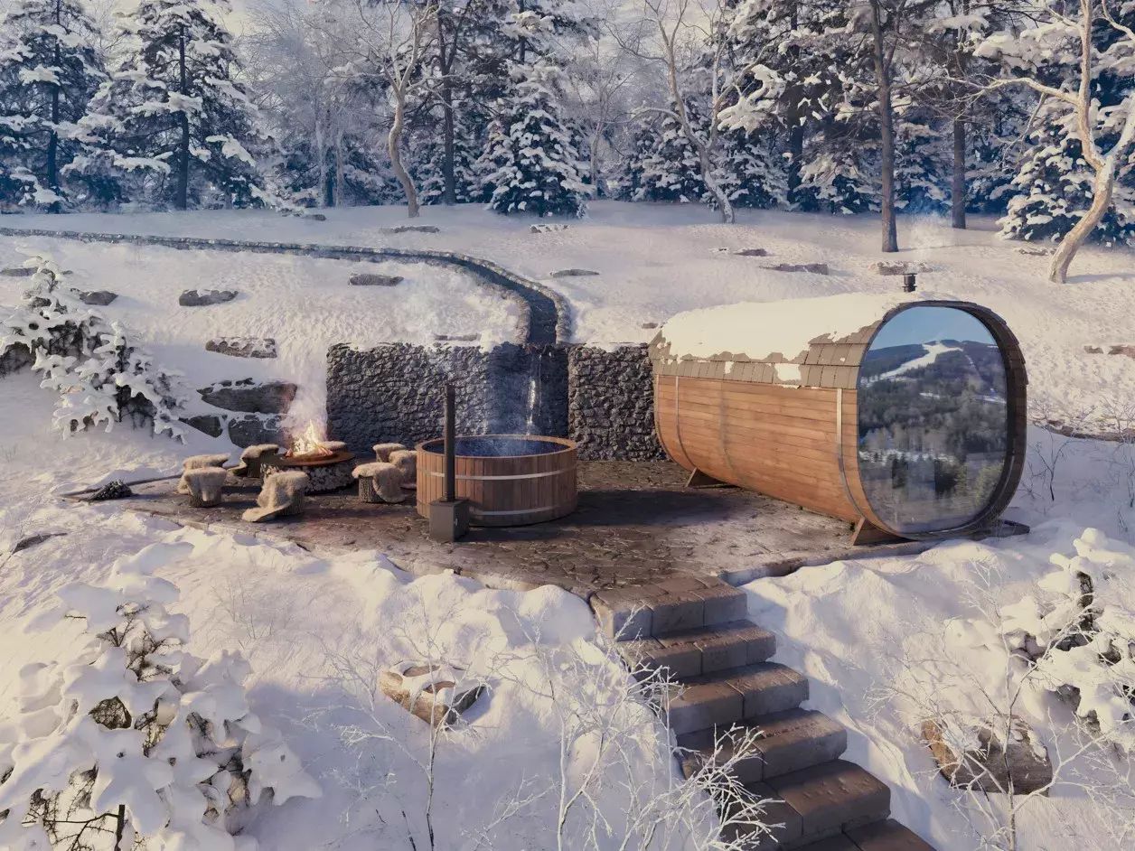 • soukromé venkovní wellness zázemí (sauna, koupací sud s horkou vodou, venkovní ohniště),