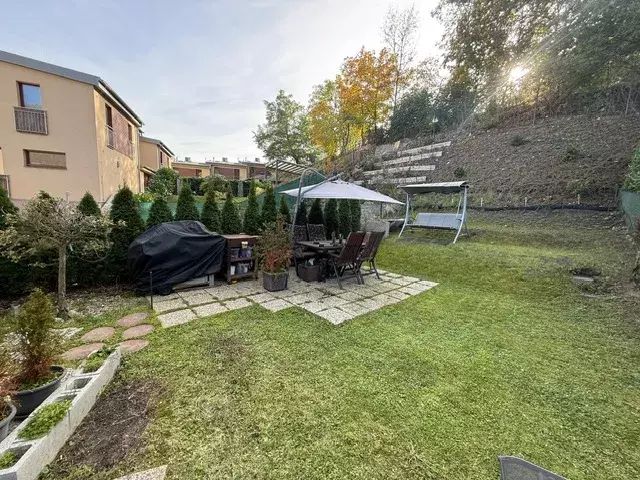 Zahrada a garáž: K bytu náleží udržovaná zahrada, která poskytuje dostatek soukromí. Najdete zde terasu pro letní grilování i travnatou plochu pro děti. Absolutním unikátem je nadstandardní garáž o velikosti 42,75 m² umístěná v suterénu. Prostor pohodlně pojme dvě auta, nebo jedno auto a část poslouží jako velkorysá dílna či sklad pro sportovní vybavení (kola, lyže, motorka).