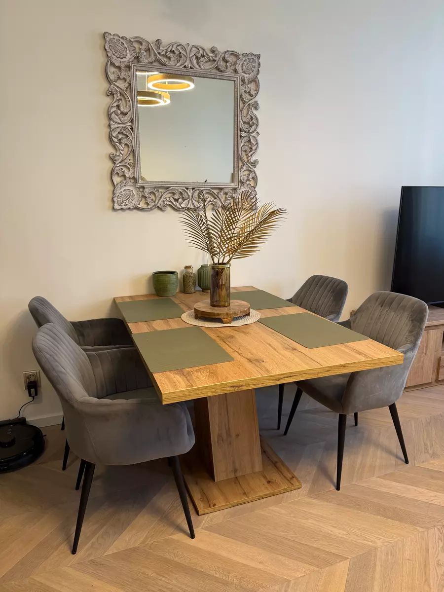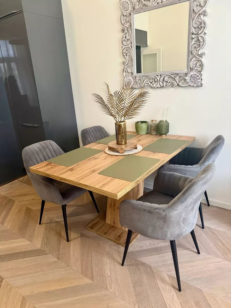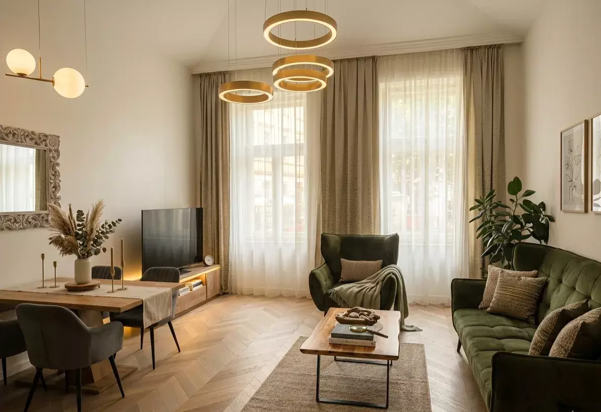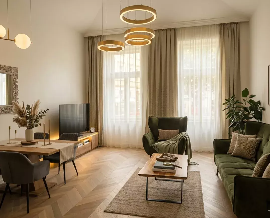 Byt je vybaven stylovým nábytkem, který odpovídá nejnovějším trendům v designu a poskytuje tak komfortní a stylové bydlení.