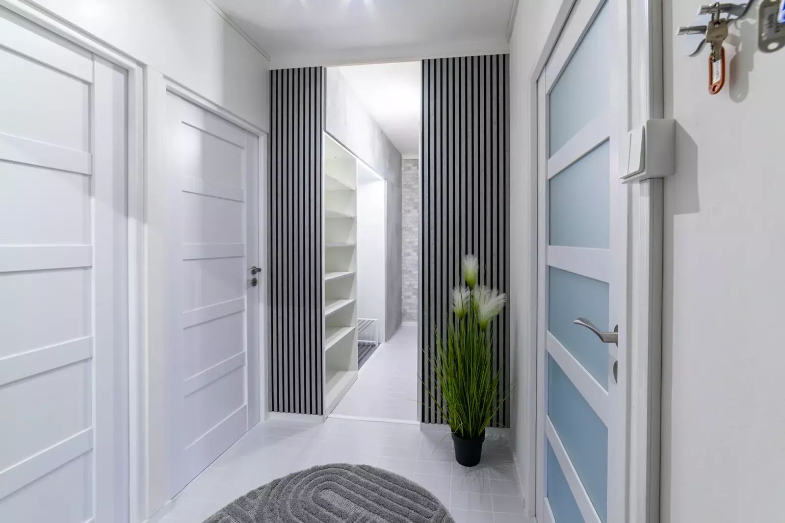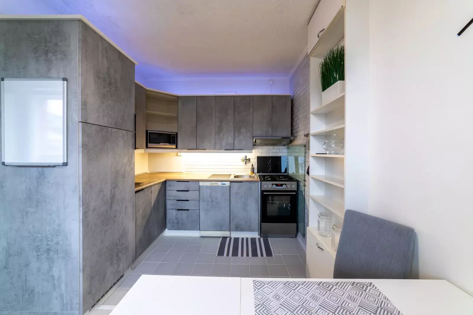 Celkový vzhled bytu je velmi vkusný a moderní se smyslem pro detail a praktičnost.