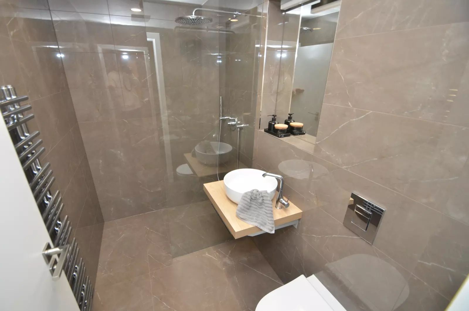 Ložnice je dostatečně velká s komfortní manželskou postelí a dostatečným úložným prostorem v podobě vestavěných skříní. Byt také disponuje vkusnou koupelnou s toaletou a sprchovým koutem. V bytě je také samostatná šatna, do které lze umístit pračku. Navíc disponuje sklepem o rozloze 2,5 m², což je ideální pro uložení větších předmětů nebo sezónního vybavení.