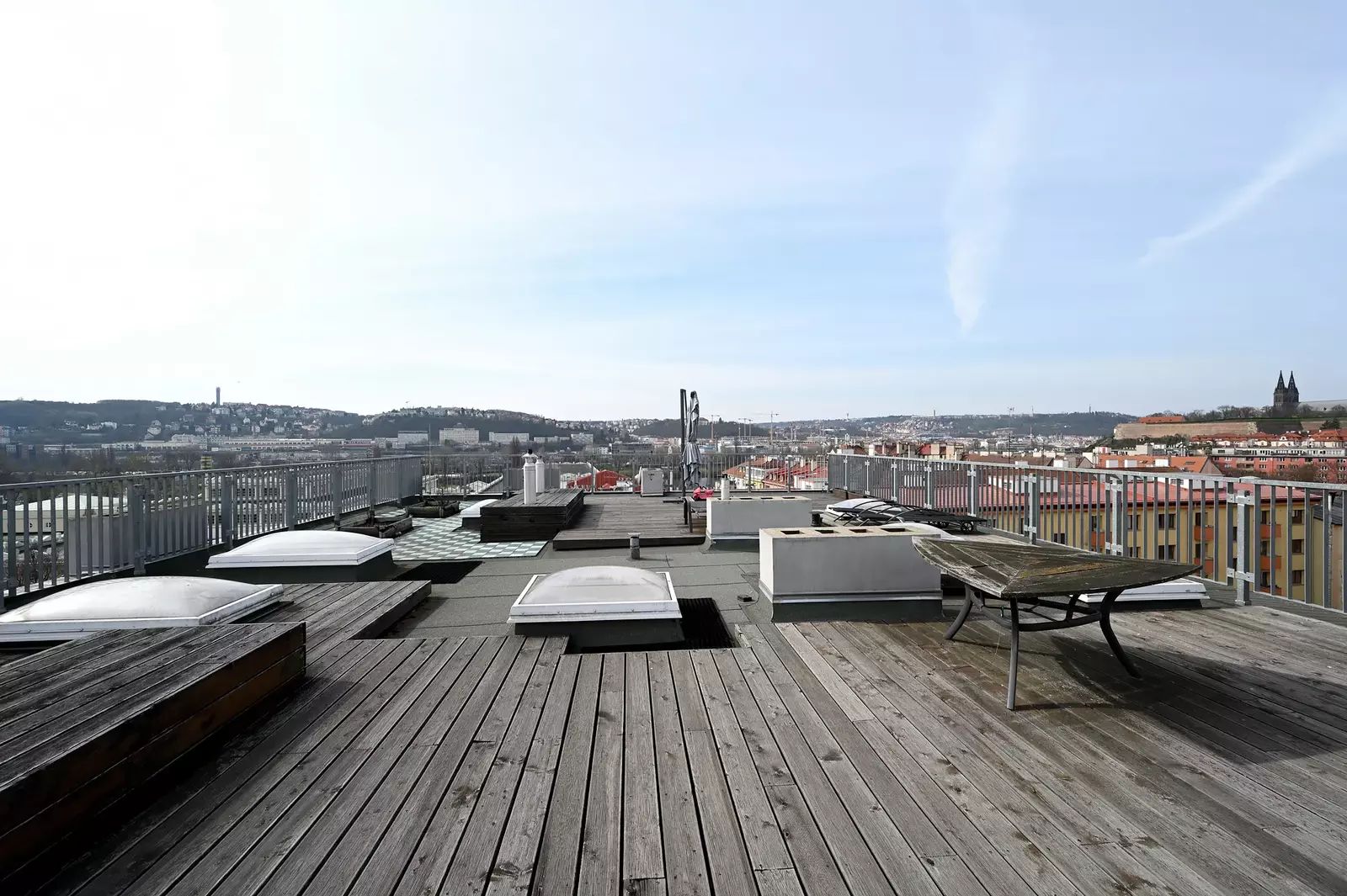 Nabízíme k pronájmu kompletně zařízený podkrovní mezonetový byt 2+kk o rozloze 105 m 2, situovaného v 5-6 N.P. v činžovním domě s výtahem v klidné ulici v Podolí se střešní terasou s výhledem na Prahu. Byt je prostorný, světlý, orientovaný na jižní stranu. Výhodná lokalita s plnou občanskou vybaveností v blízkém okolí, v pěším dosahu MHD s dobrou dostupností na stanice metra a nábřeží Vltavy. V těsné blízkosti bytu je památka Vyšehrad s parkem. Nedaleko je bazén a koupaliště Podolí a Žluté lázně. Podél Vltavy vede oblíbená cyklostezka. Byt má ve spodní úrovni halu, obývací pokoj se vstupem na terasu, plně vybavenou kuchyňskou linku, koupelnu s vanou a toaletou. V patře je hala s výstupem na střešní terasu s nádherným výhledem na Vyšehrad, ložnice, a plně vybavená koupelna se sprchovým koutem a toaletou. Byt se pronajímá kompletně zařízený, včetně nábytku a všech spotřebičů. Ve vnitrobloku domu je možnost parkování, které je v ceně nájmu. Měsíční částka pro platbu nájmu je 37.000,-Kč a 7.000,-Kč poplatky. K dispozici ihned. Kauce jeden měsíční nájem 37.000,-Kč. Pro více informací kontaktujte realitního makléře. Neplatíte provizi RK.