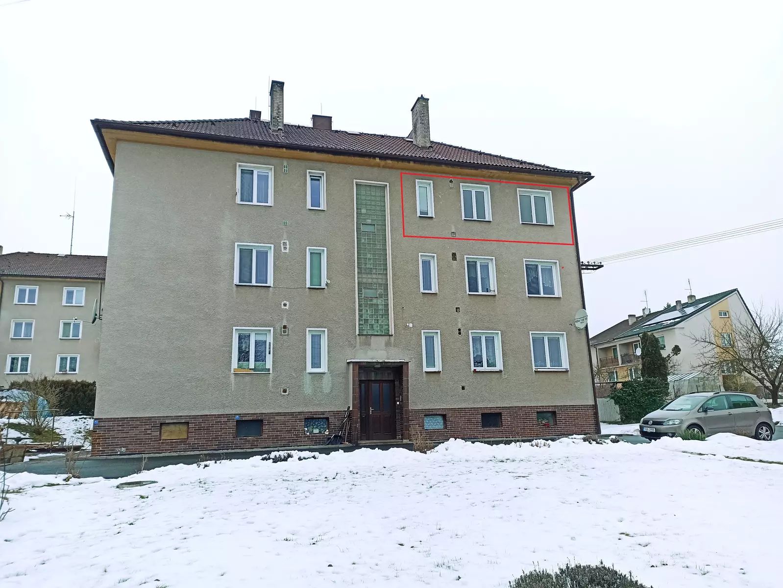 Tři prostorné pokoje, přístupné ze středové chodby, nabízí příhodné soukromí pro rodinu, nebo i samotáře s větším nárokem na prostor. Obývací pokoj potěší balkonem, mimo to je potřeba zdůraznit koním, který otevírá prostor pro vytápění pevnými palivy. S ohledem na sklepní prostory, kde je možné palivo uskladňovat, je zde vítaná možnost ušetřit provozní náklady. Ústřední topení a ohřev vody primárně zabezpečuje kotel na plyn. Toaleta je po rekonstrukci, jinak je vše téměř v původním stavu.