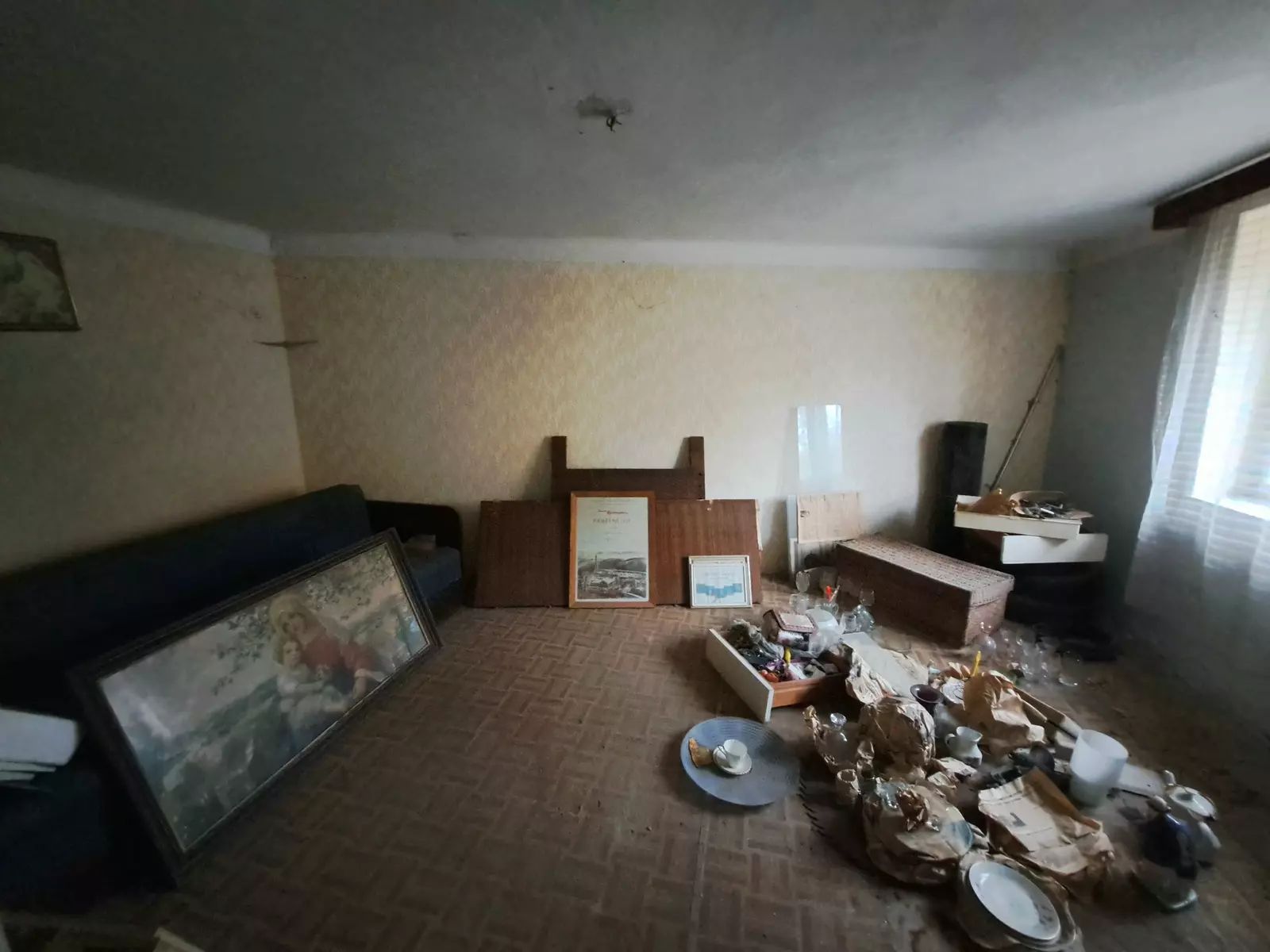 Cihlový dům o zastavěné ploše 169 m² je určen k celkové rekonstrukci, což novému majiteli umožňuje přizpůsobit si interiér moderním standardům.