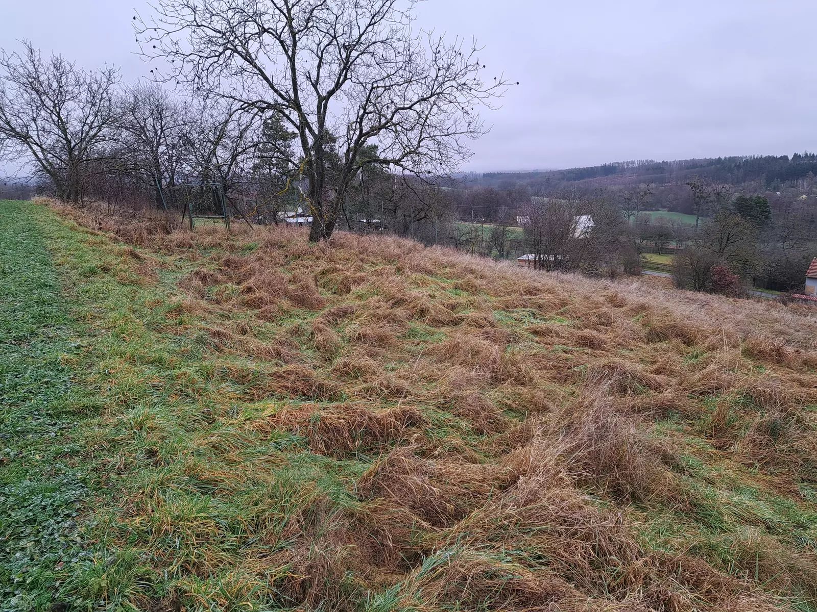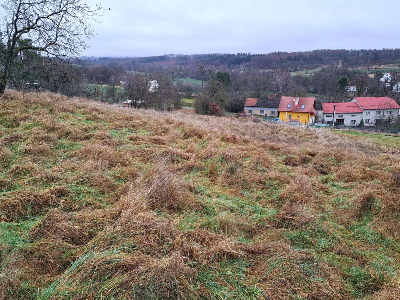 Přímo naproti domu (přes obecní cestu) se nachází rozlehlá, svažitá parcela.