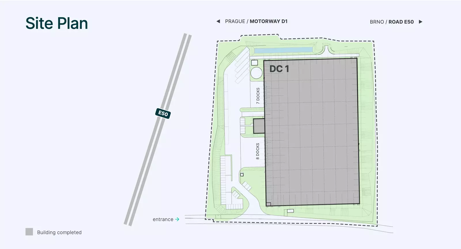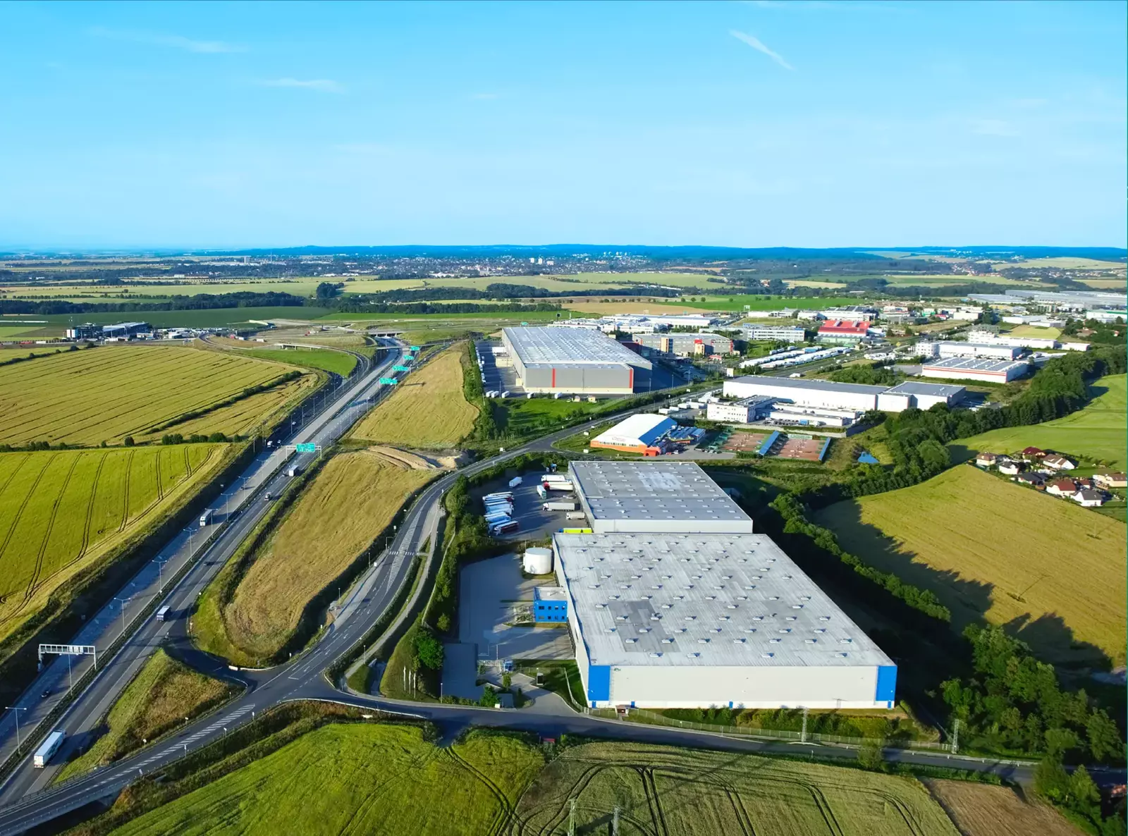 • Výborná dopravní dostupnost – snadné napojení na dálnici D1 (exit 10), Pražský okruh a hlavní evropské dopravní tahy.