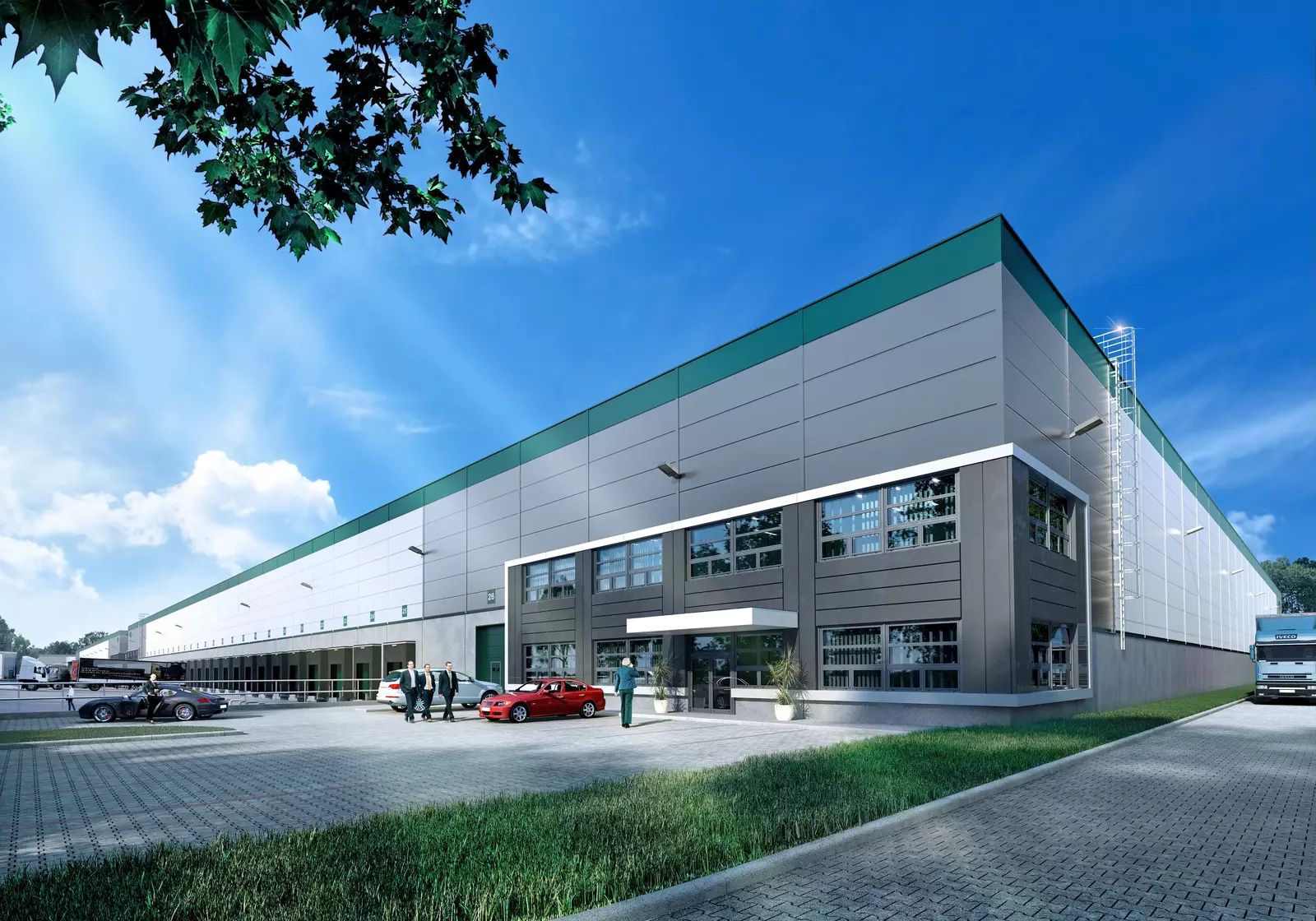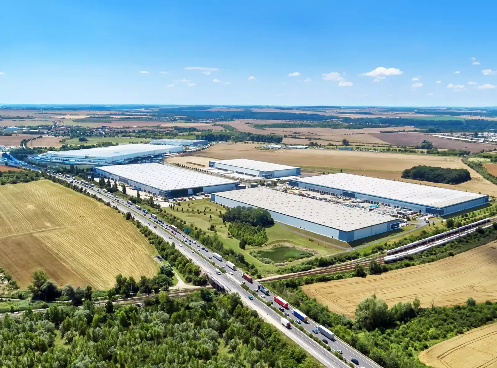 • Výborná dopravní dostupnost – přímé napojení na dálnici D8 (exit 9), strategická poloha u hlavní evropské trasy Praha – Německo (Hamburk) a blízkost letiště Prague Vodochody. Areál je také dobře dostupný MHD, což usnadňuje dojíždění budoucím zaměstnancům.